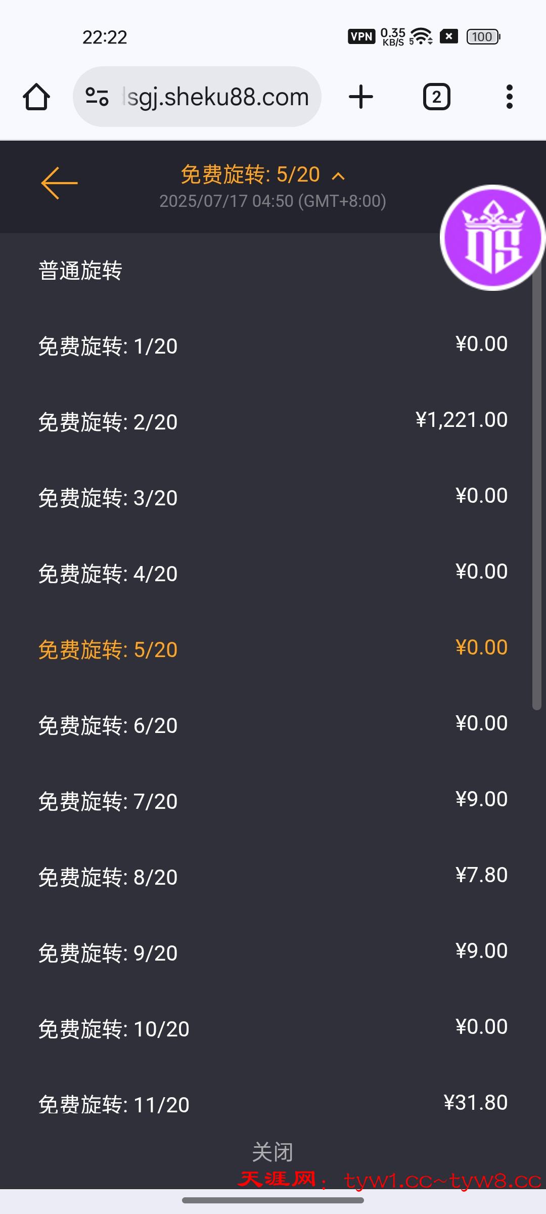 天运白嫖100星耀也干出来四五千支持天涯社区✊