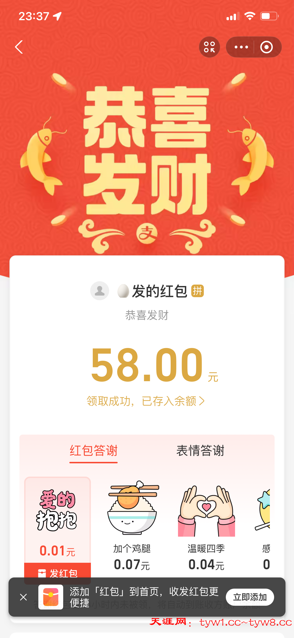 天涯网怡怡:打赏一根华子