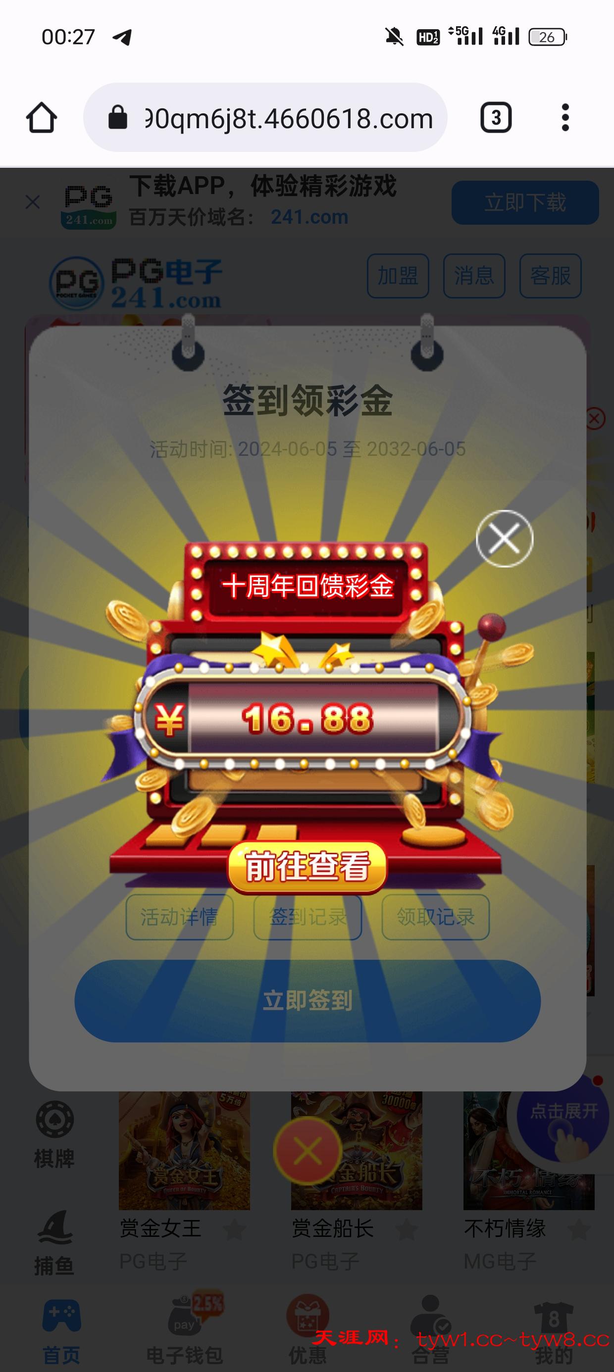 网址4660.com有账号登录自动跳出来领取十周年回馈彩金,有号登录看下