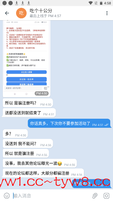 这种人直接拉黑就好,没素质。活动参加 不参加 取决于自己 要是觉得被骗注册 可以不用参加 社区不强迫大家参加活动