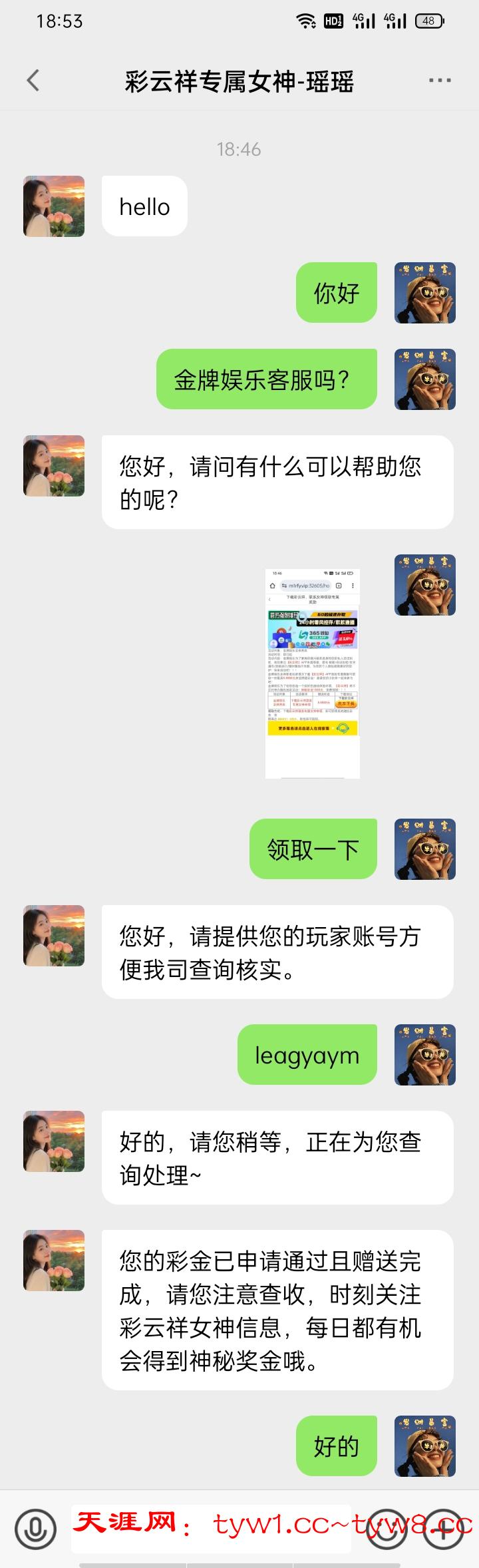 登录优惠里下载彩云祥,把活动发给她,领取添加专属客服彩金就可以了,秒到!