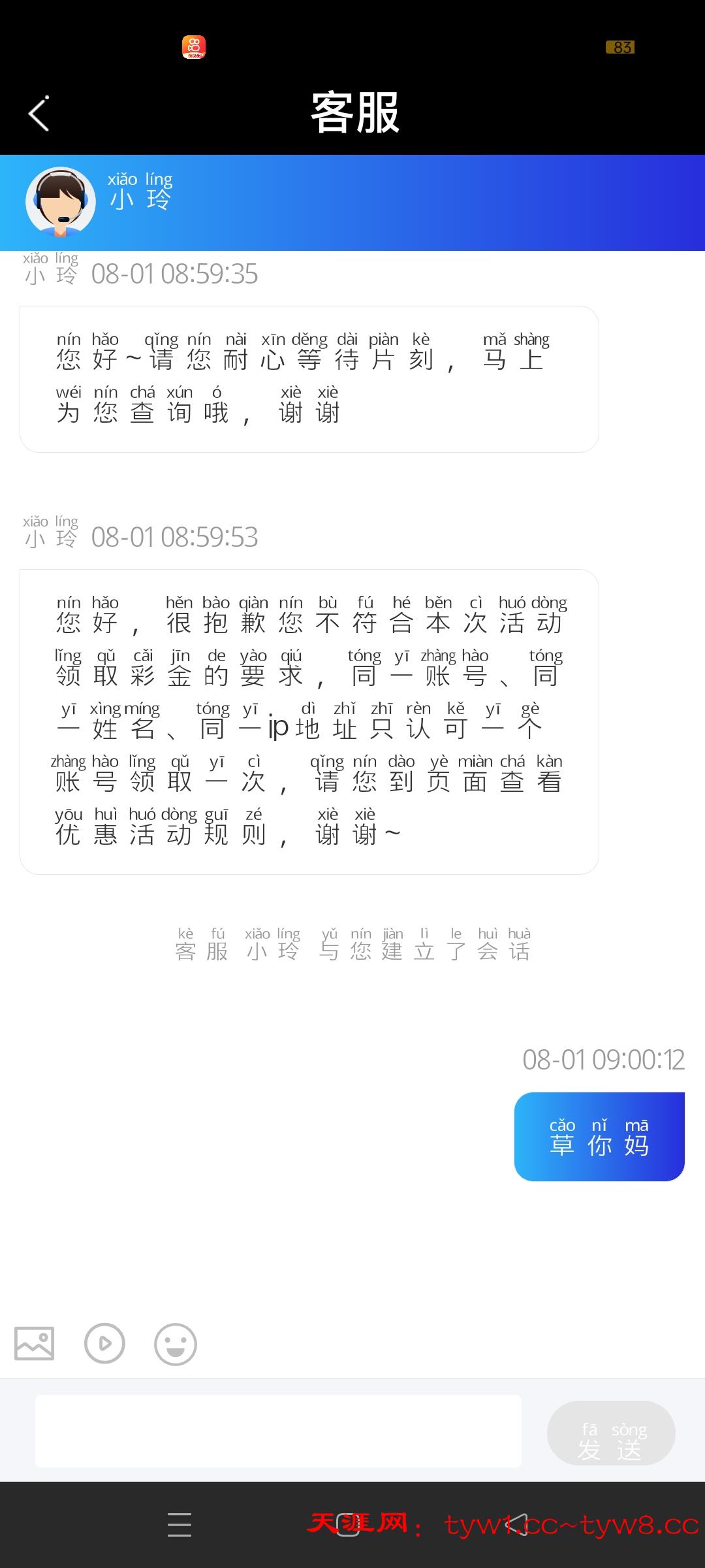 垃圾平台,20秒没到回个消息