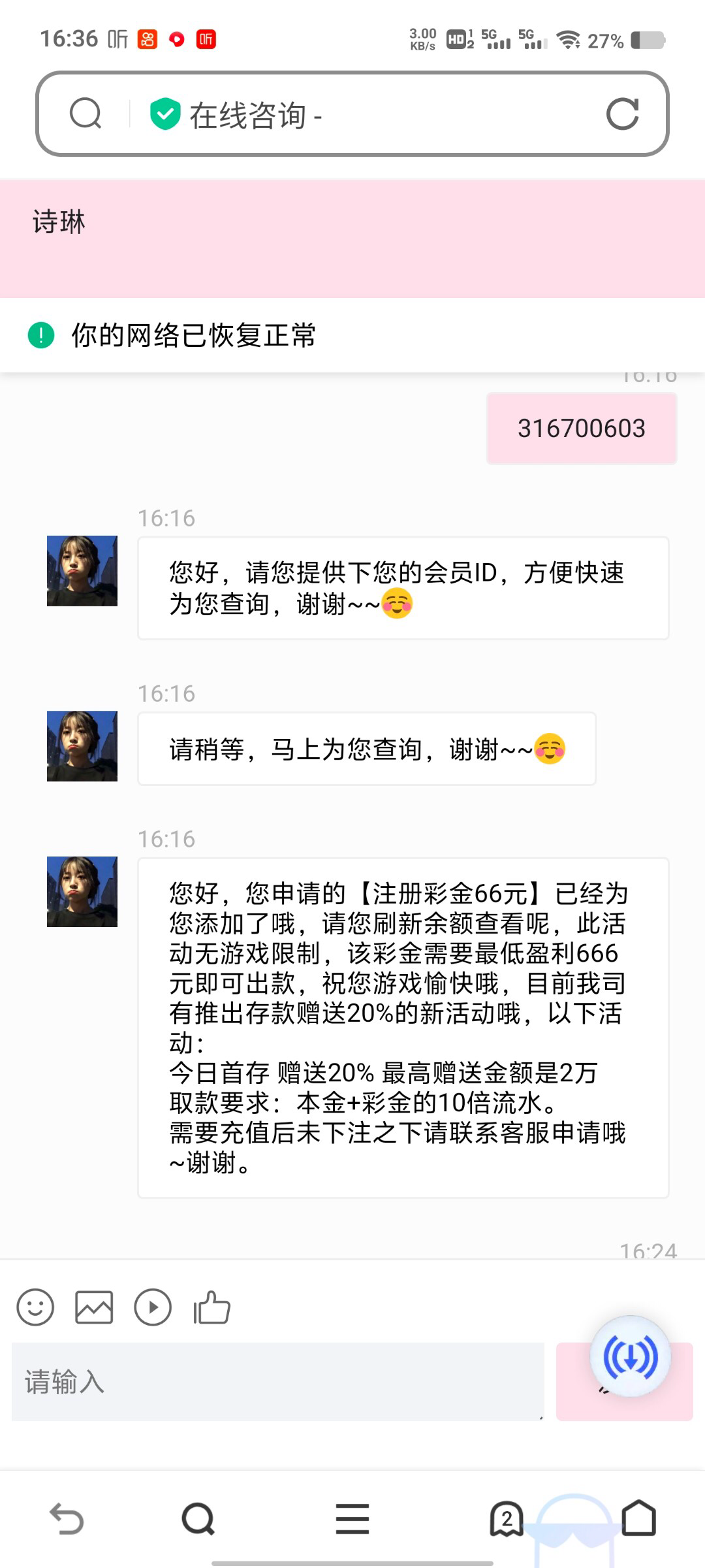找客服碰瓷66元666提秒到,我是接到电话的 地址 5887e.tv