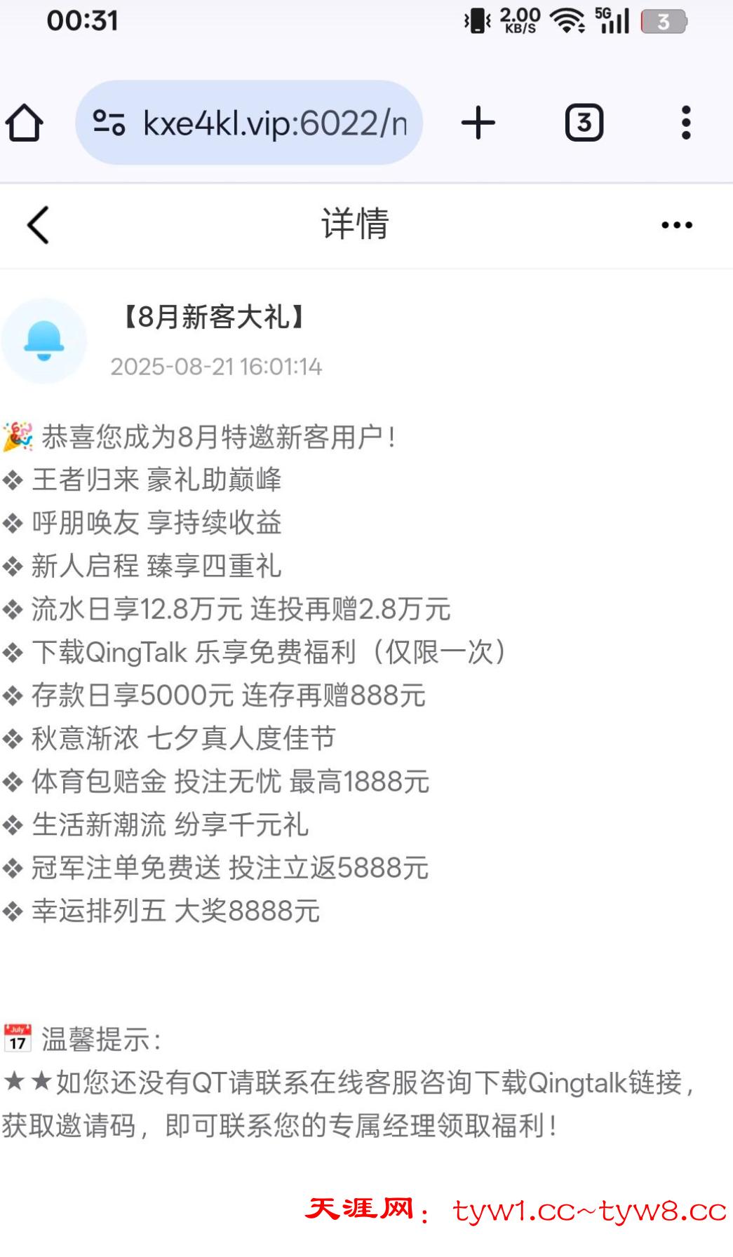 站内信回馈彩金,我是这个月才注册的新号送了18+8,联系在线客服碰瓷试试,基本都有链接 jiuyou.com