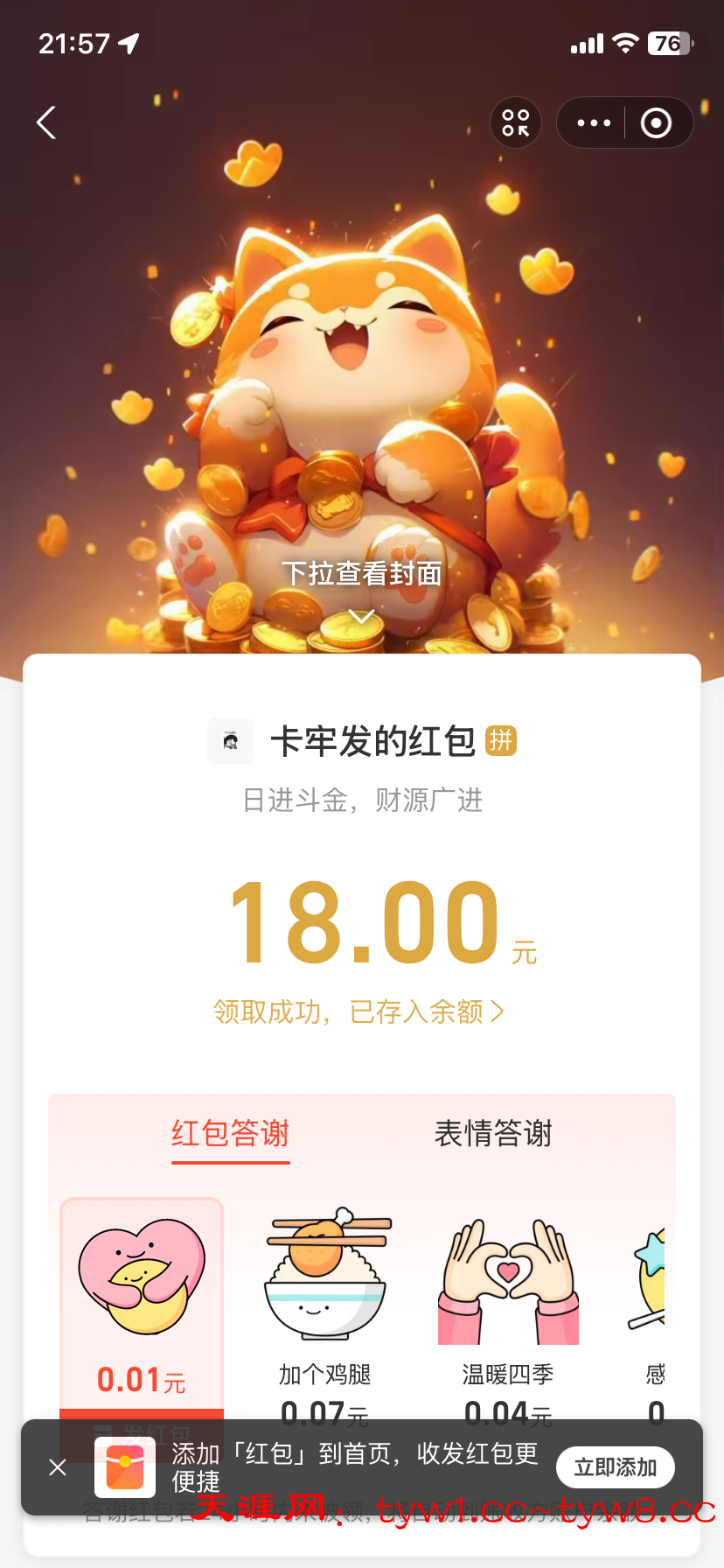 领到了社区猪脚饭 天涯牛逼