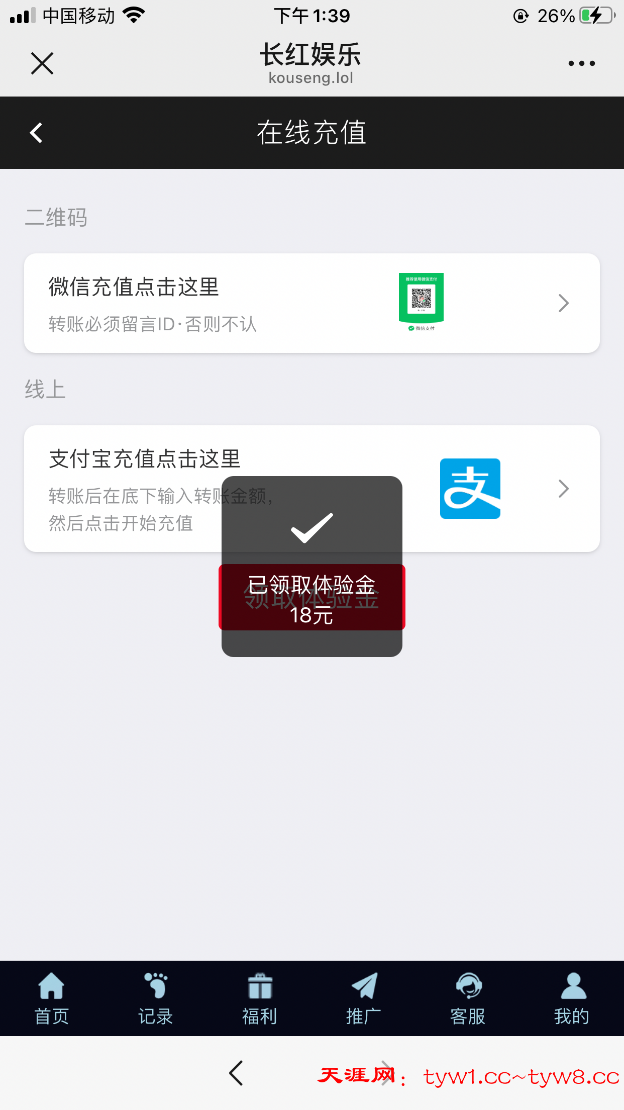 微信扫码,登入进去找在线客服申请,点击充值那里手动领取18体验金,打到168下18现金
