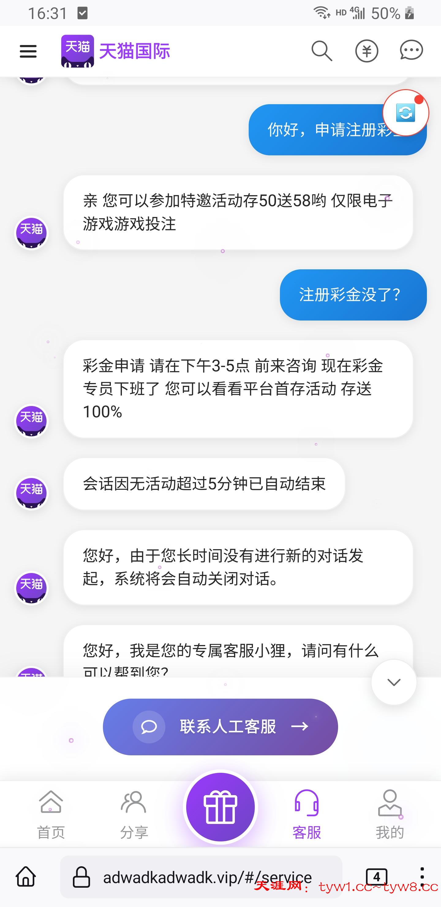 亲,接到活动专员通知,今天的体验金已经派发完毕,客服建议您参加限时存50送58,或者新人首存送100%。