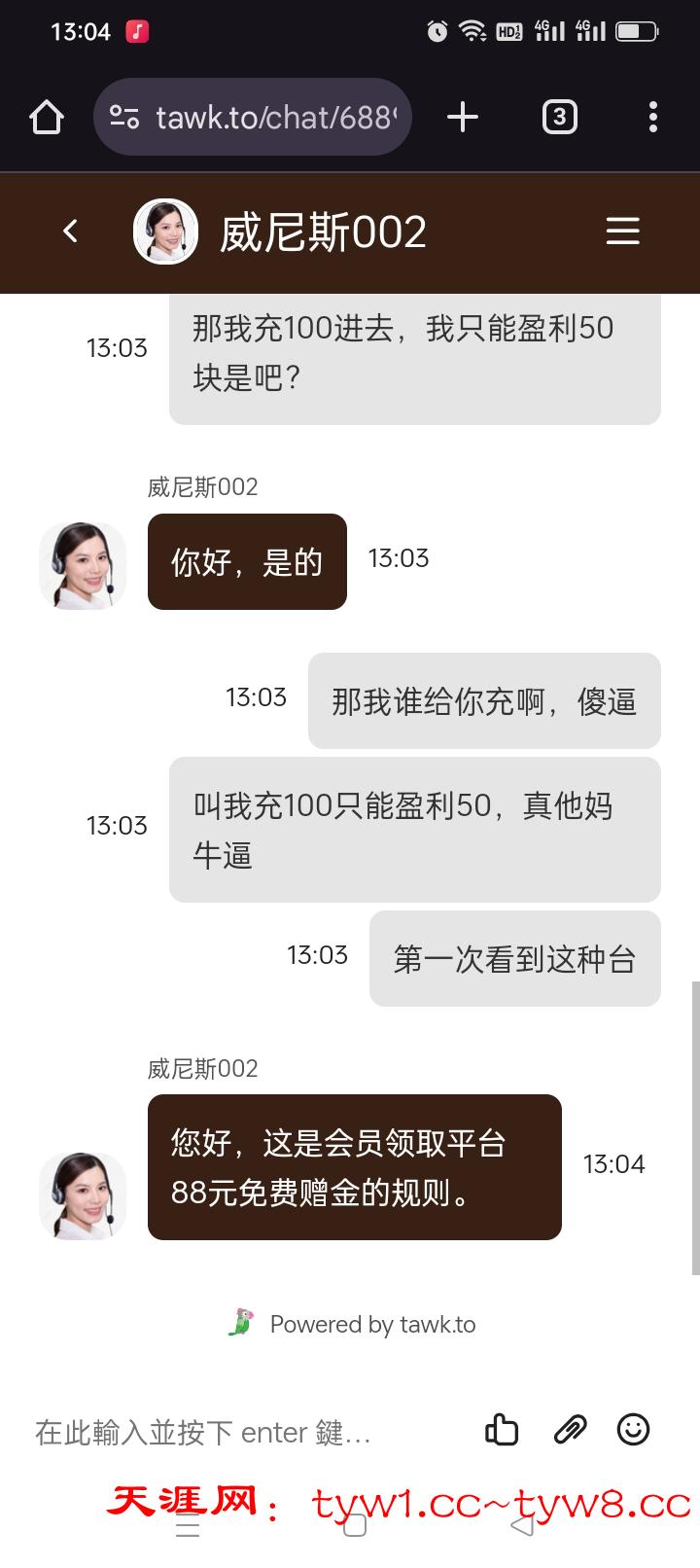 您好,由于您参加了88元活动,提现奖金需要会员累计总入金达到100元,最高提现奖金为150元,超出盈利的部分将被扣除黑台不要去存 提款就封号 你存以后