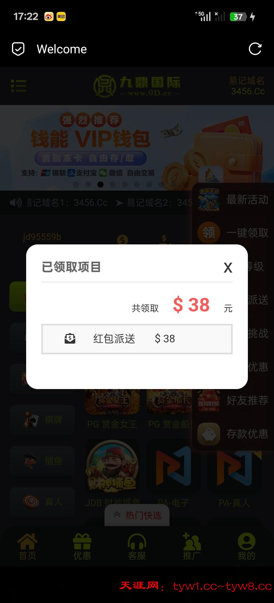 我之前九鼎注册送18,连续三天送18,一次没吃,这个台可以提现