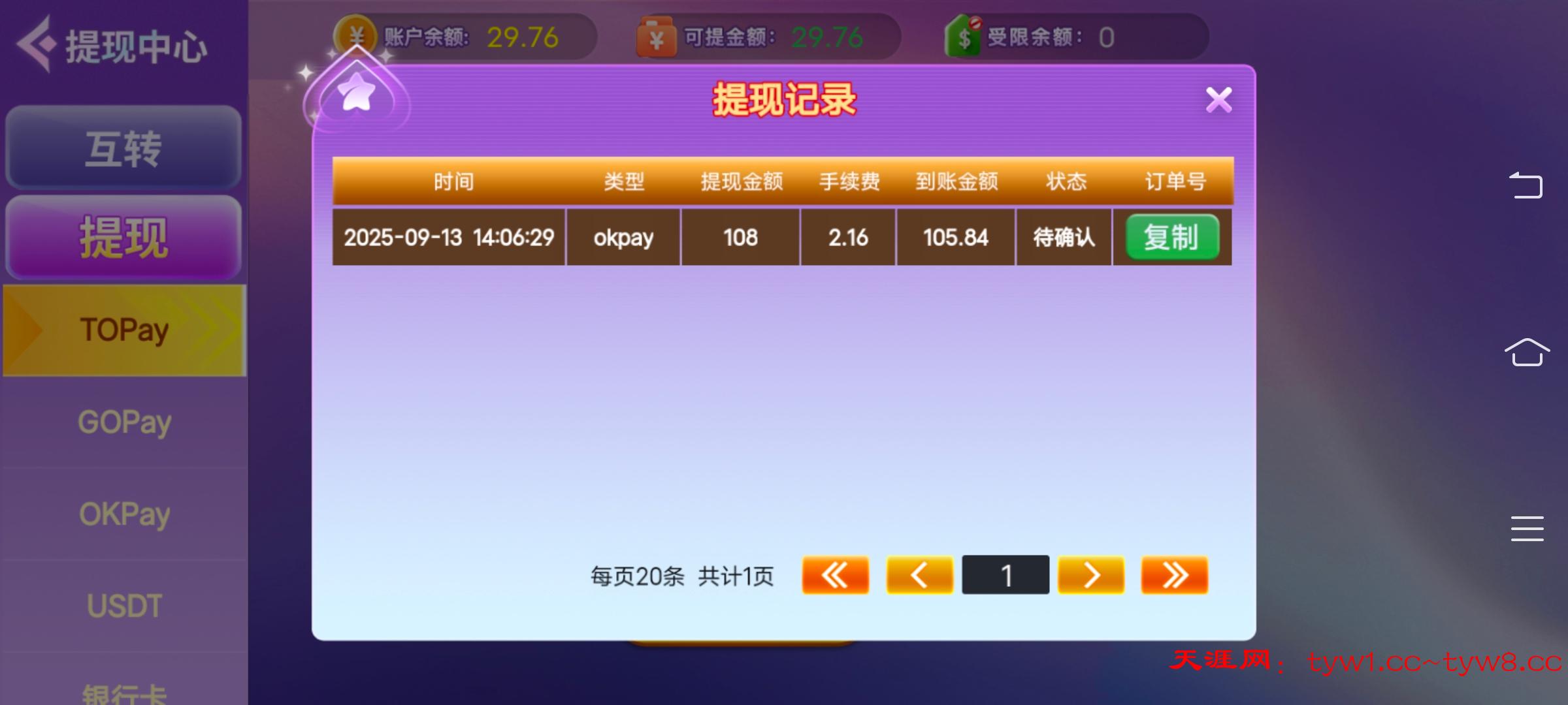 帖子有说阿  108提现金额。你666