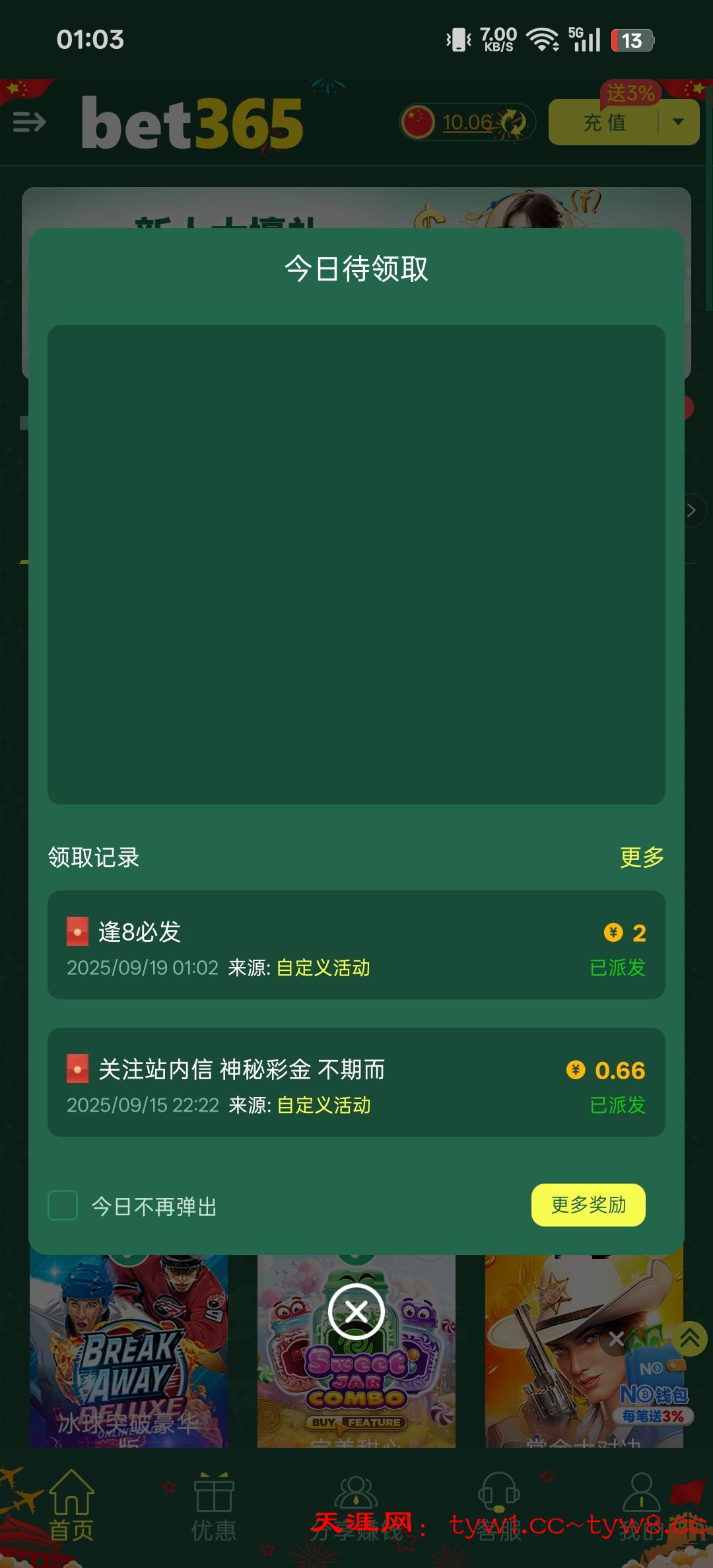 老用户上号看看逢8彩金,之前就打的38+38送的10r