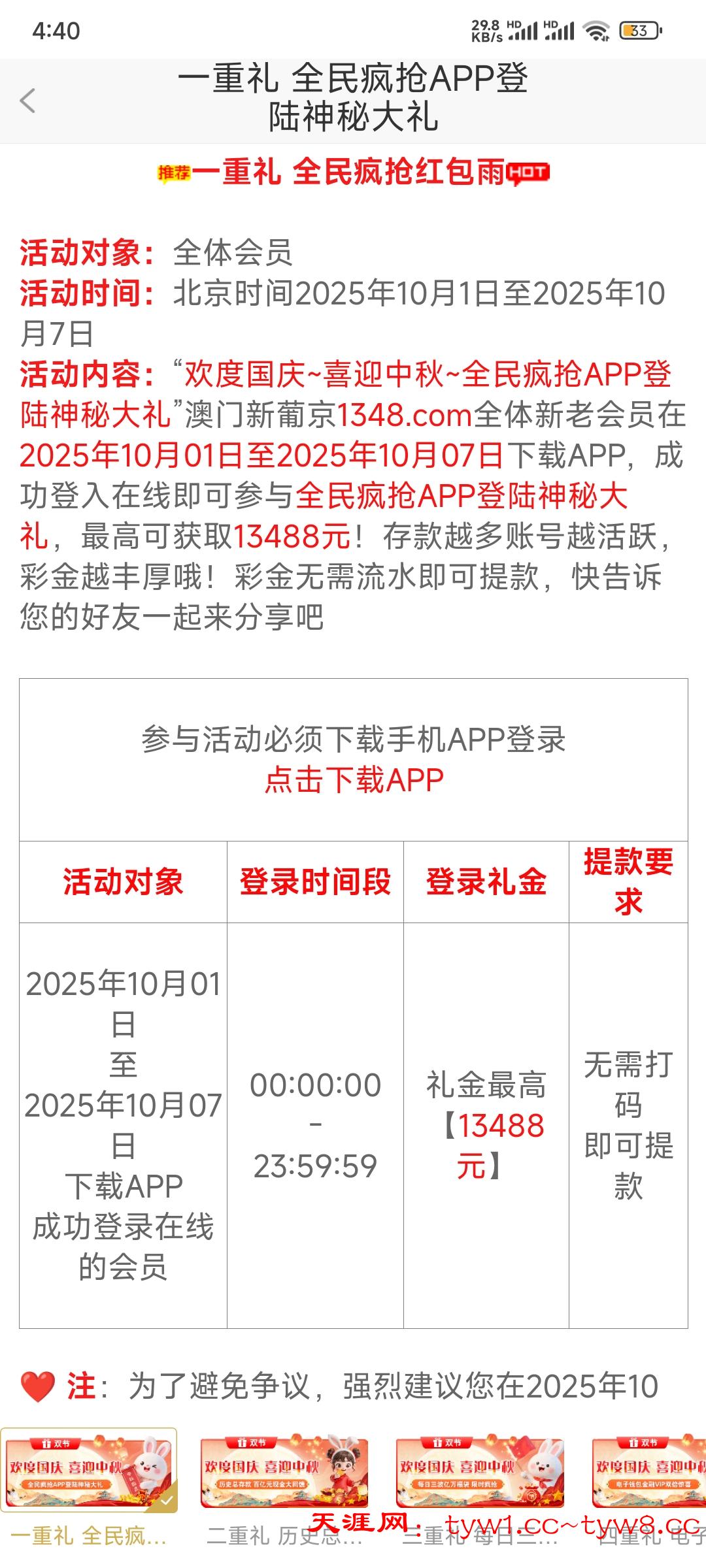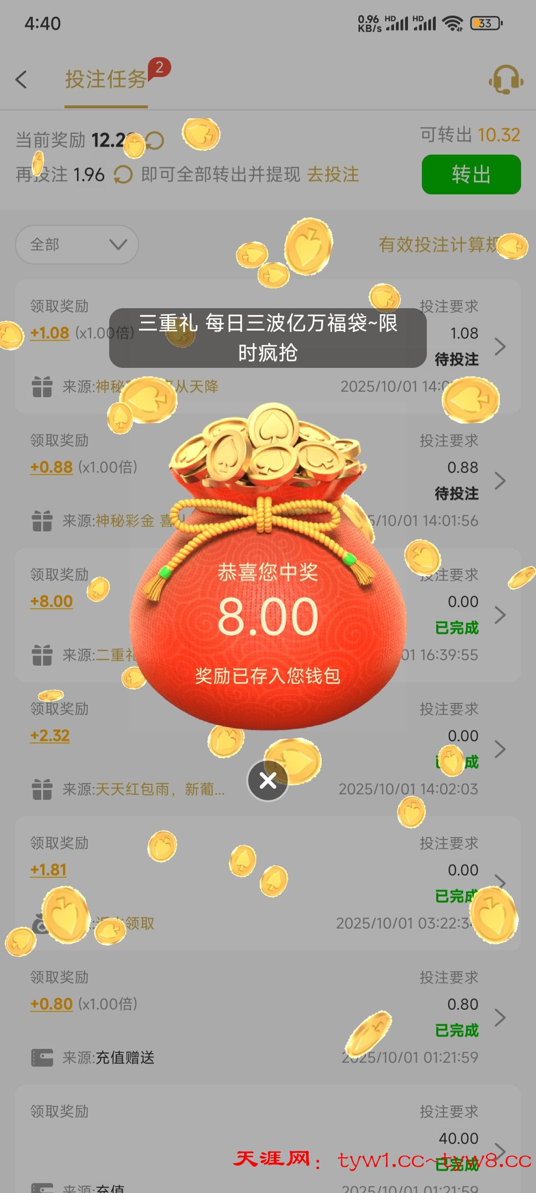 我上个号,这个国庆登录红包雨彩金都是8块,1-7号每天都有,还有vip回馈