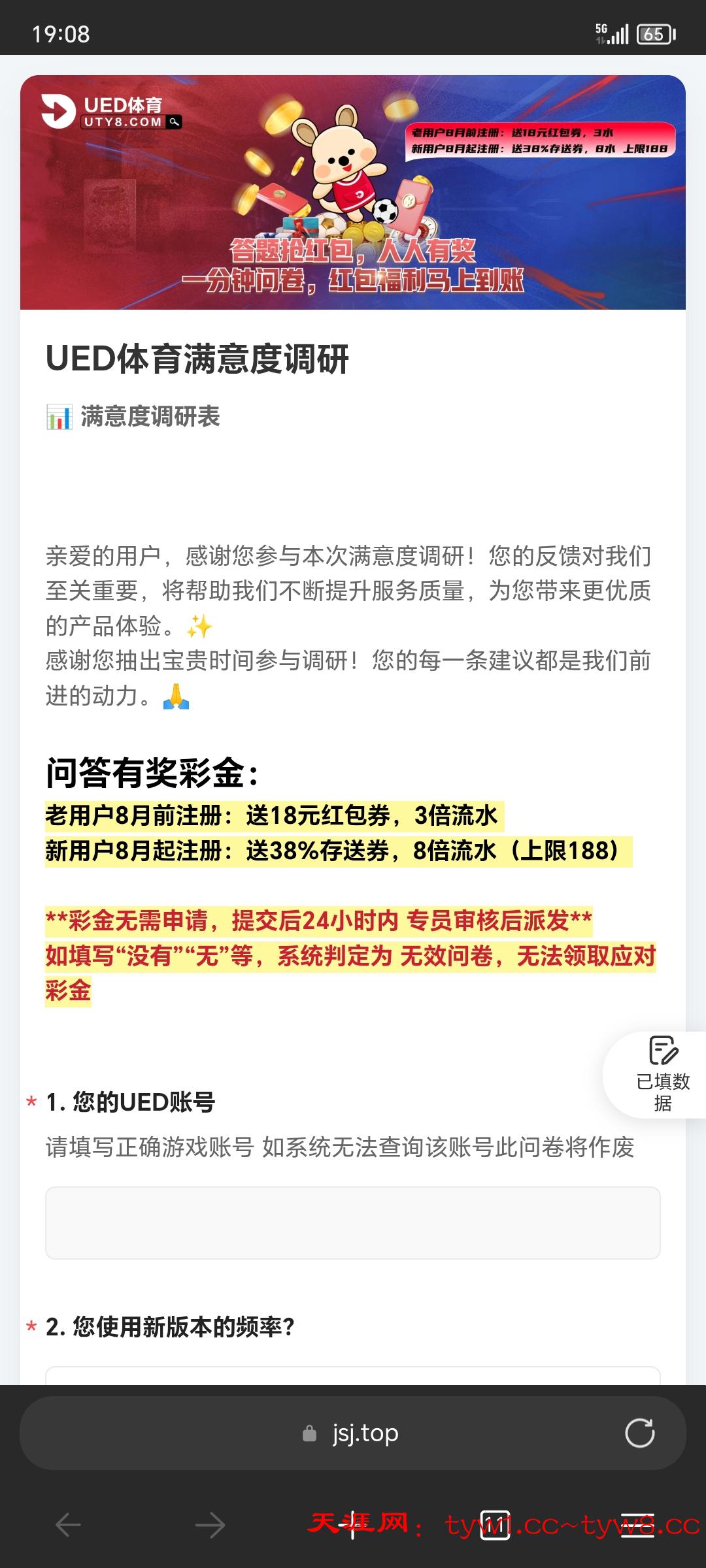 【UED体育】—✅—问卷调查彩金18