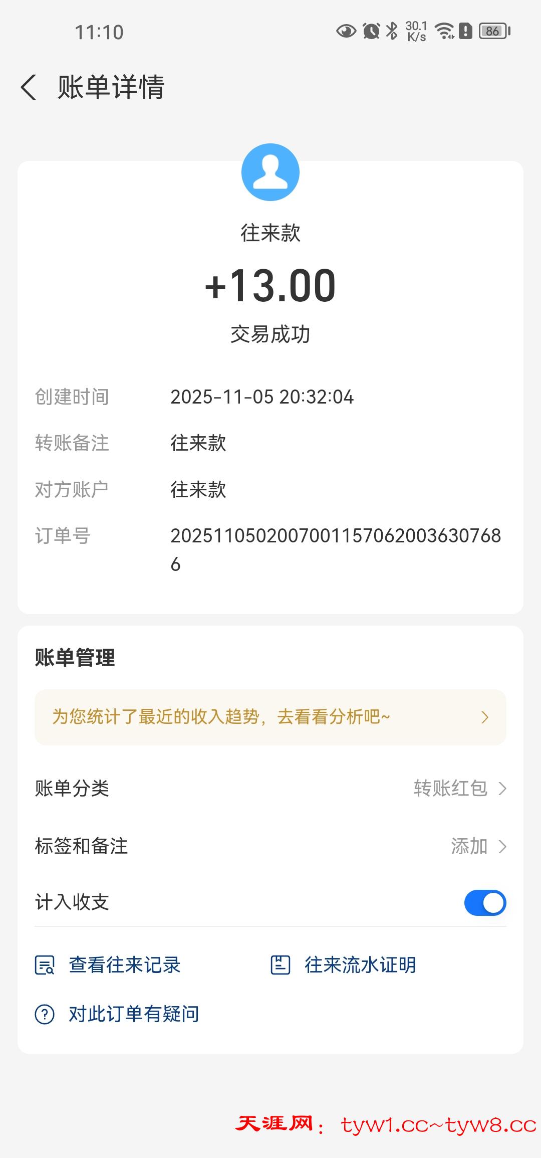 到账两包白沙+槟榔 感谢天涯