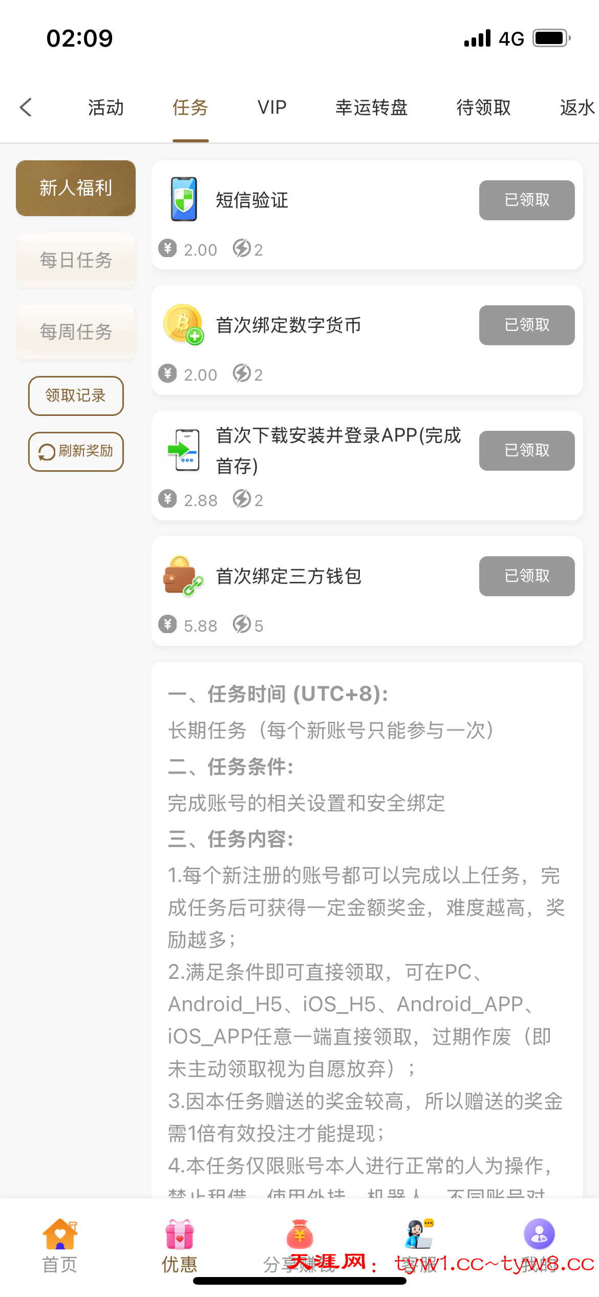 优惠→任务→自助领取即可