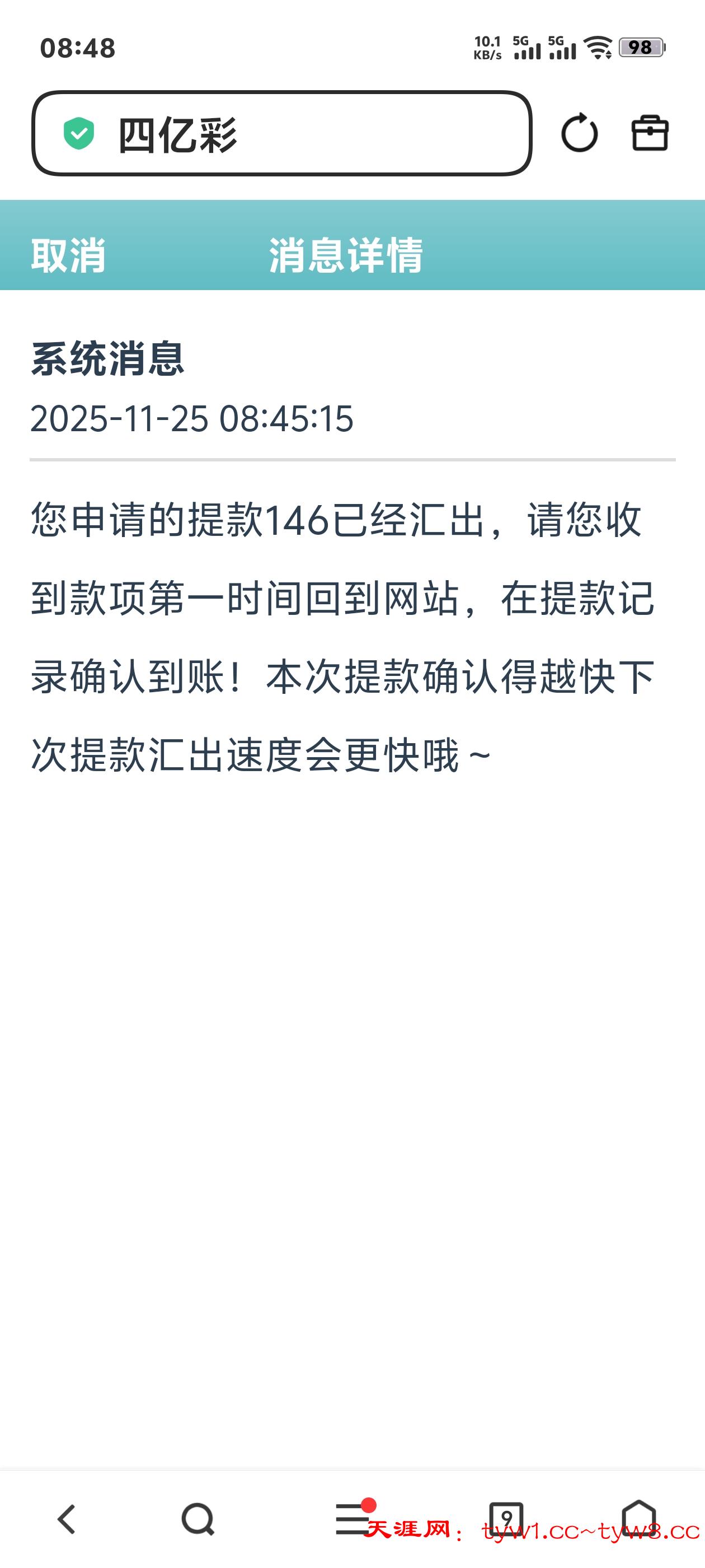 提现了142到账了