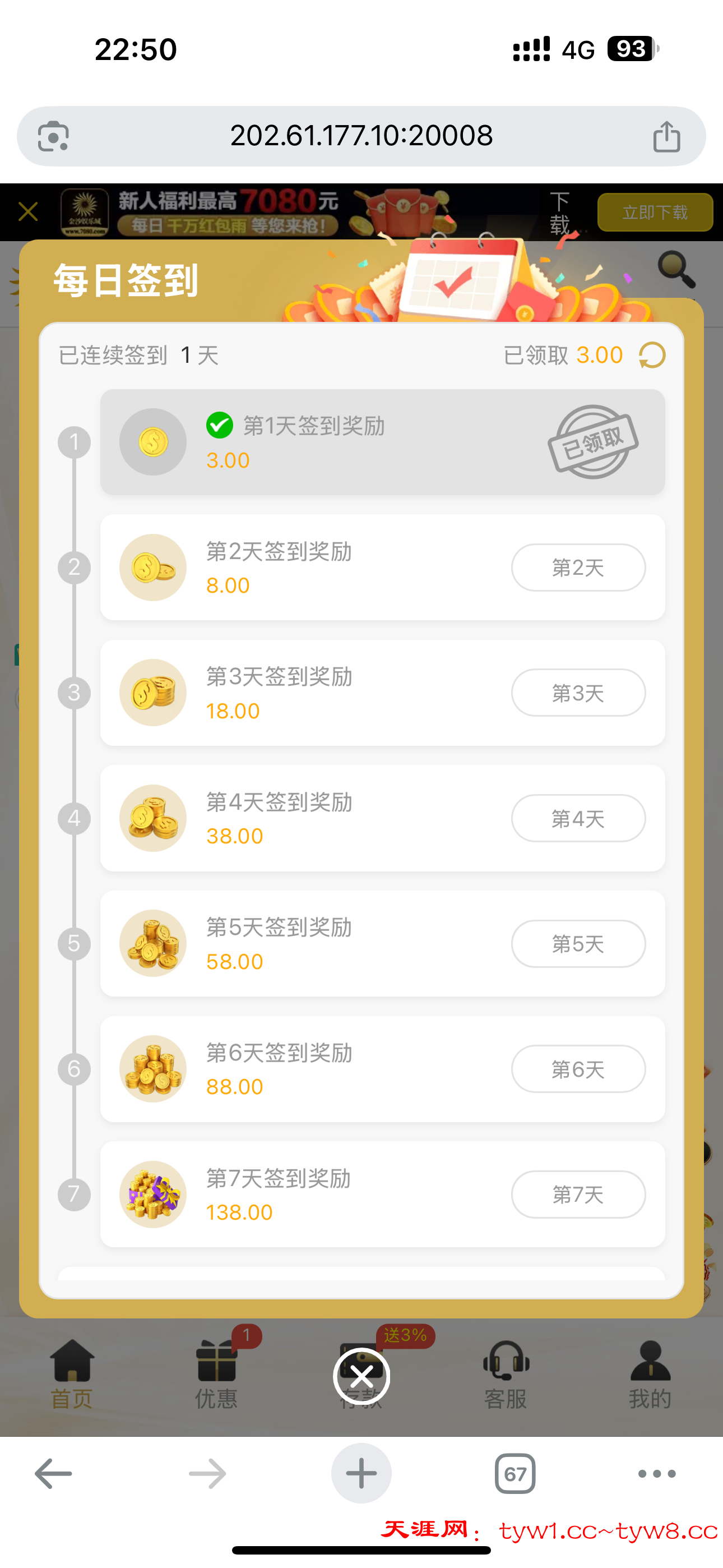 7080.com 免费签到彩金 进去还有红包