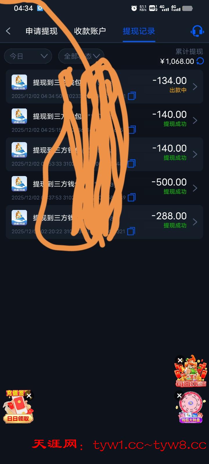 打到1000提288到账