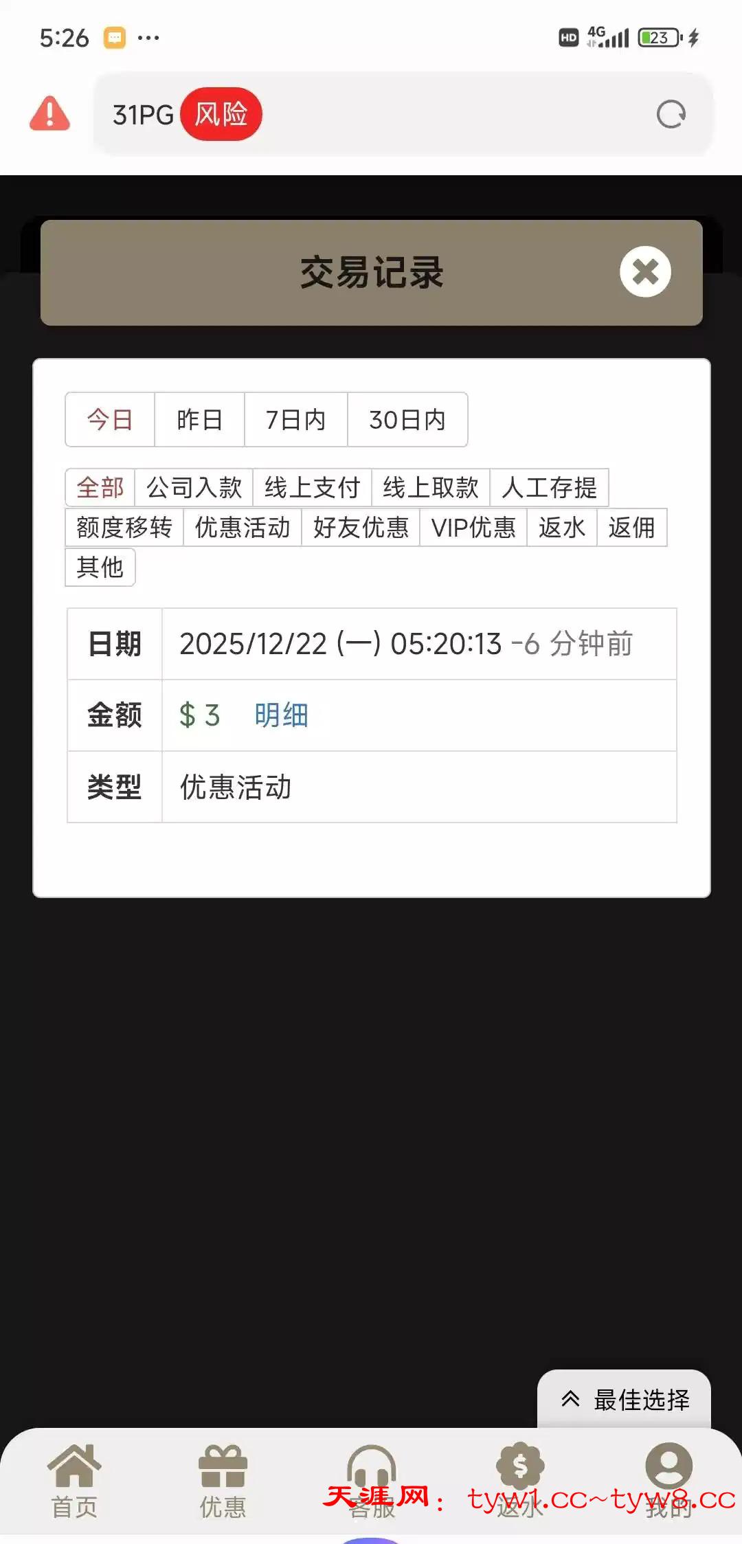 下午接的境外电话,人工报的网址6016.co十天前注册的账号,没充值过,3块没打出