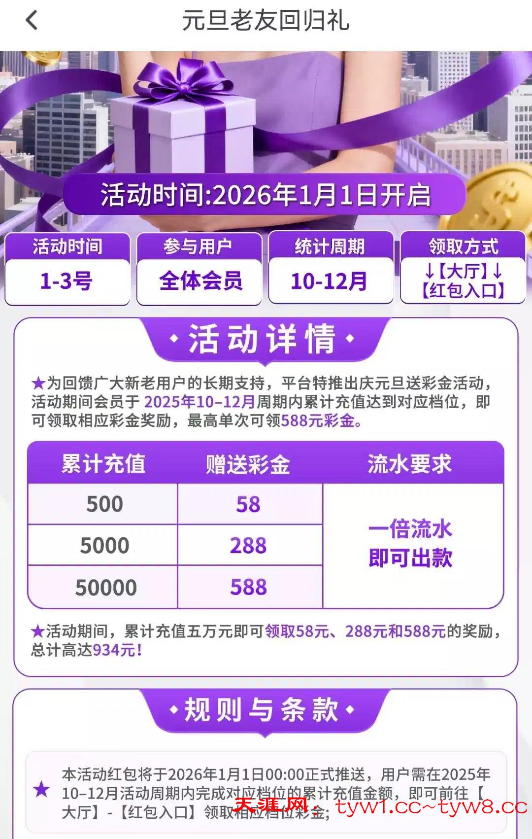 1月1日老友回归礼 10-12月积累充值500以上别错过了 这几个台天涯都有推过 热门区或者搜索就出来了