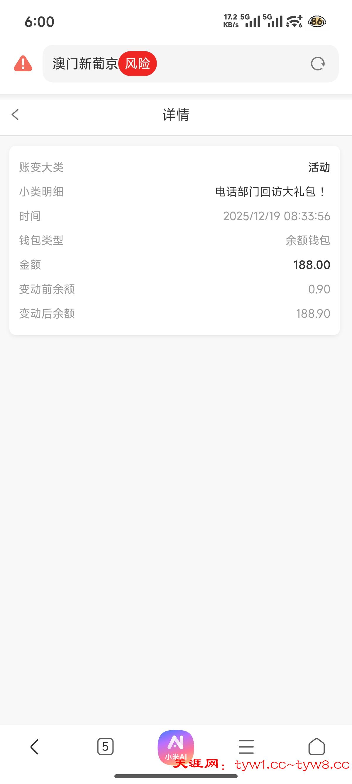 应该是之前注册过,充没充值忘记了,今天想找以小博大的平台,找到这个台了,登录进去一看有188,我看记录是电话彩金,系统派送的,有号的可以登录查看一下。提现200到账了