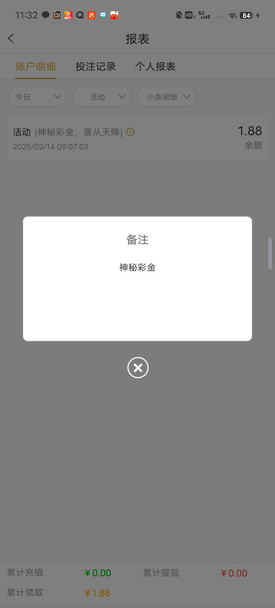 网址100pg.com早上接电话说登录有彩金,有账号的都去登录看看,基本都有,没有充值过登录了结果有1.88