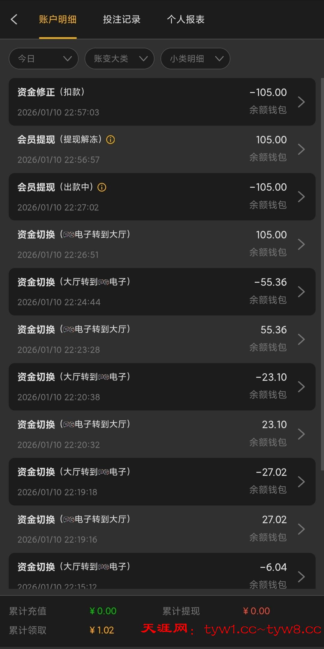 看到有一位兄弟发了上去领1块钱返水。全程打电子,还注单异常。打上100,去提现结果给我全扣了。