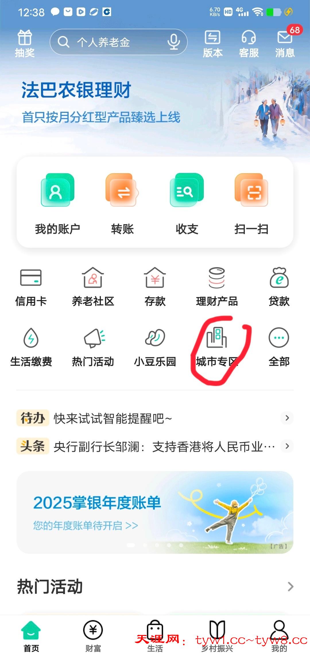 注册农行app地区选湖南代码185689(注册过的注销过重新开通)首页城市专区进去切换到常德就看到了