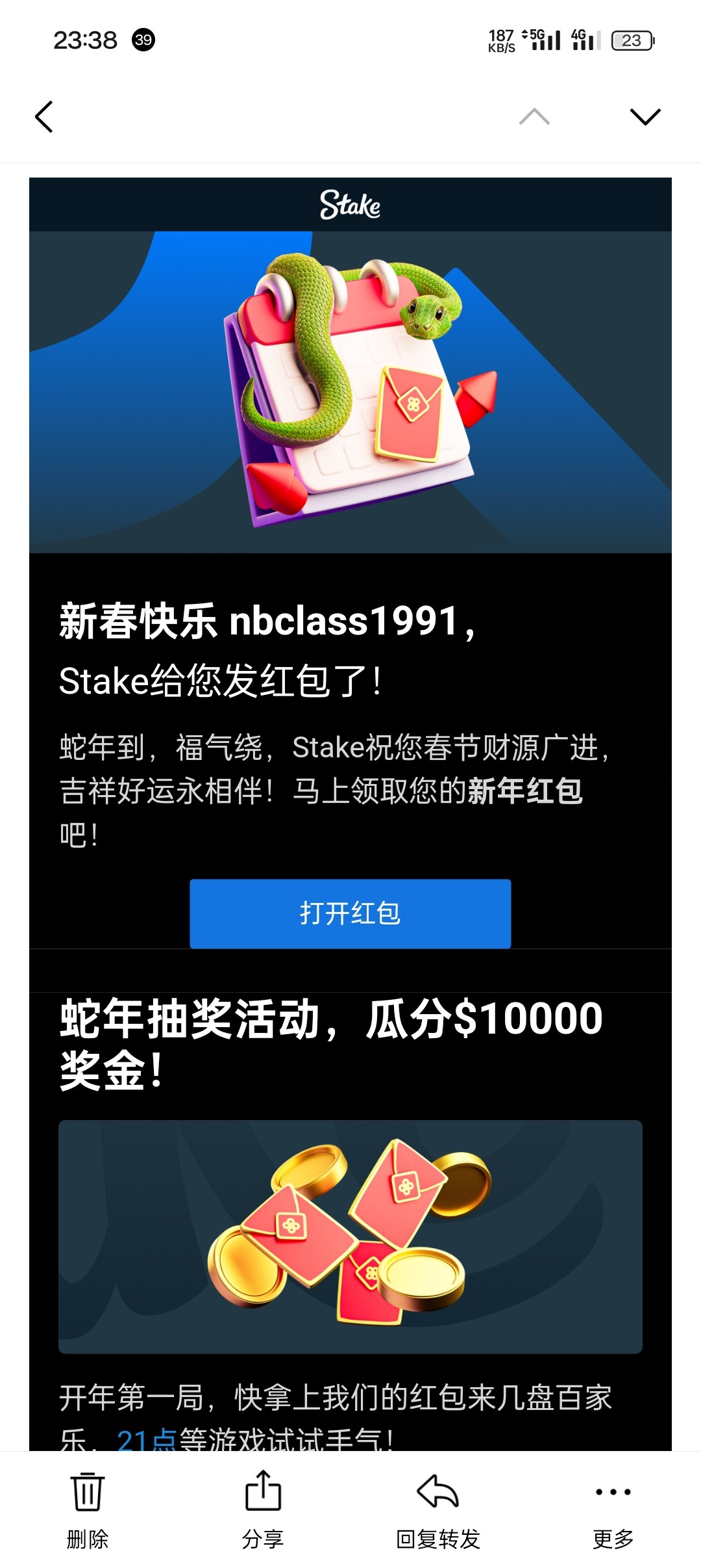 有玩儿stake的看下邮箱,我0级领了9u,我朋友银牌24u