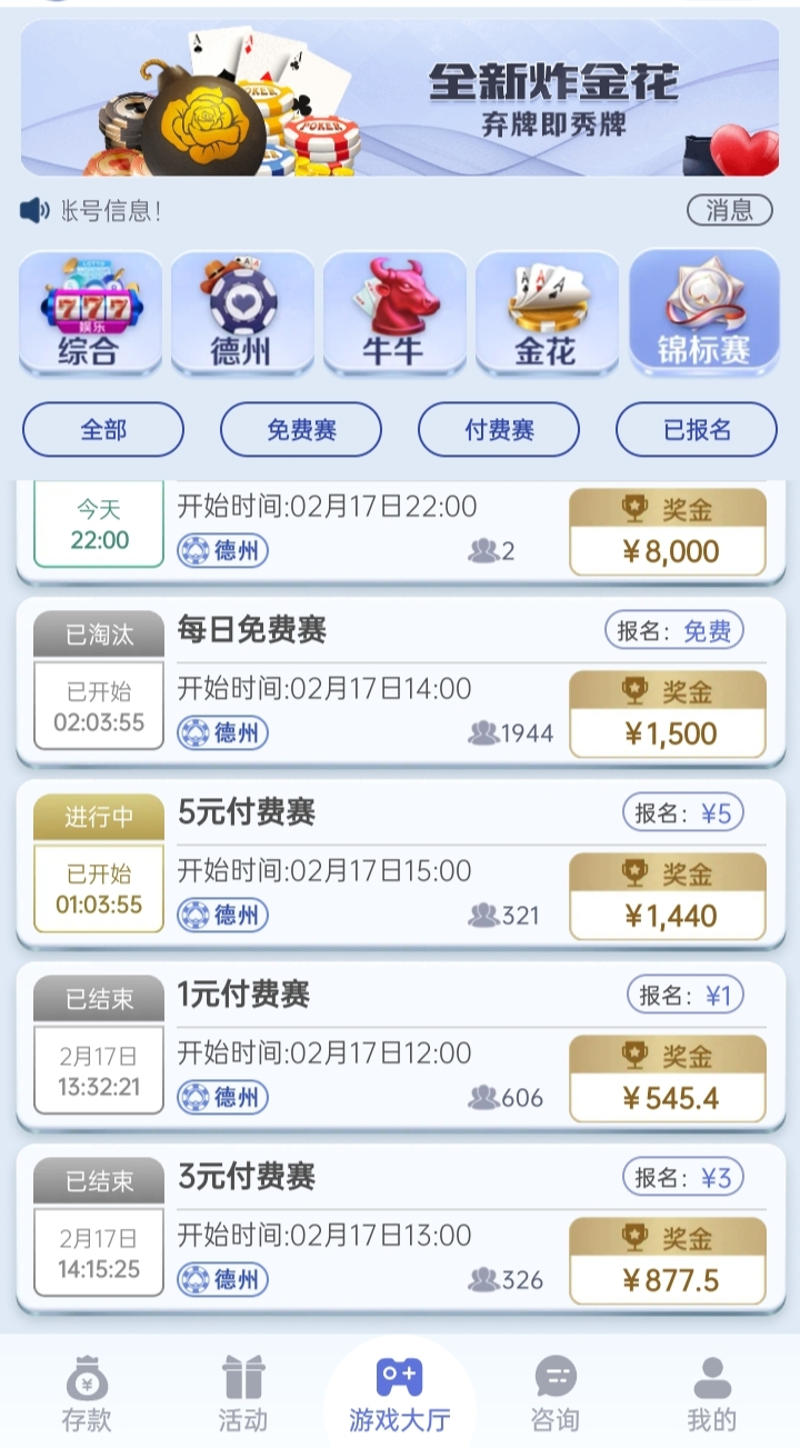 玩的德州扑克锦标赛 一元付费赛