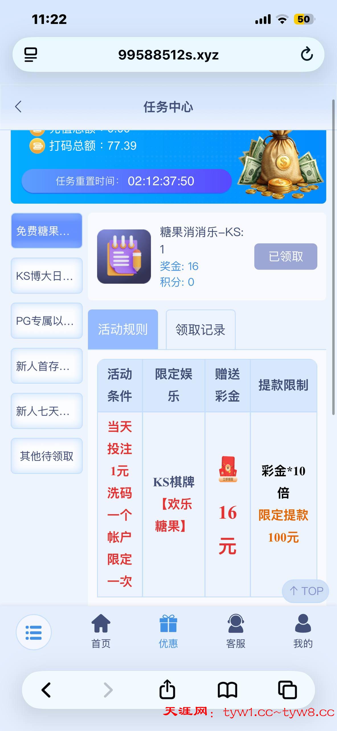 拿返水投1块钱就能领16元,只能打欢乐糖果,一注两块有水,提了100,梦想有号的可以去搞一波