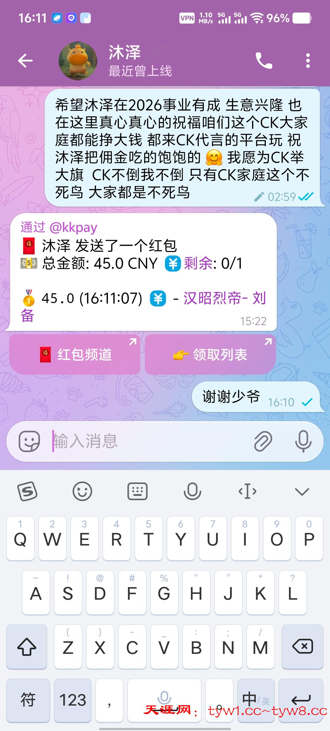 在这2025年里 我加入了ck和天涯成为了里面的一个成员 每次身上掏不出钱的时候 困难的时候都会来社区看白嫖平台 天涯还时不时做抽奖活动 里面的抽奖活动 一年来所以的抽奖 我有50%都差不多中了的 也打出款来了 是社区还有ck让我度过困难期 这一年来我虽然没有打很多有效 但是我在这里是真心向大家做个反馈 今天过年我就给沐泽发个个祝福语 沐泽少爷直接给我安排了华子 最后希望ck和天涯在2026事业有成 生意兴隆 也在这里真心真心的祝福咱们这个CK大家庭都能挣大钱 都来CK代言的平台玩 祝沐泽把佣金吃的饱饱的 🤗 我愿为CK举大旗 CK不倒我不倒 只有CK家庭这个不死鸟 大家都是不死鸟玩台就来天涯ck 你来了后悔一时 你不来后悔一辈子!!!
