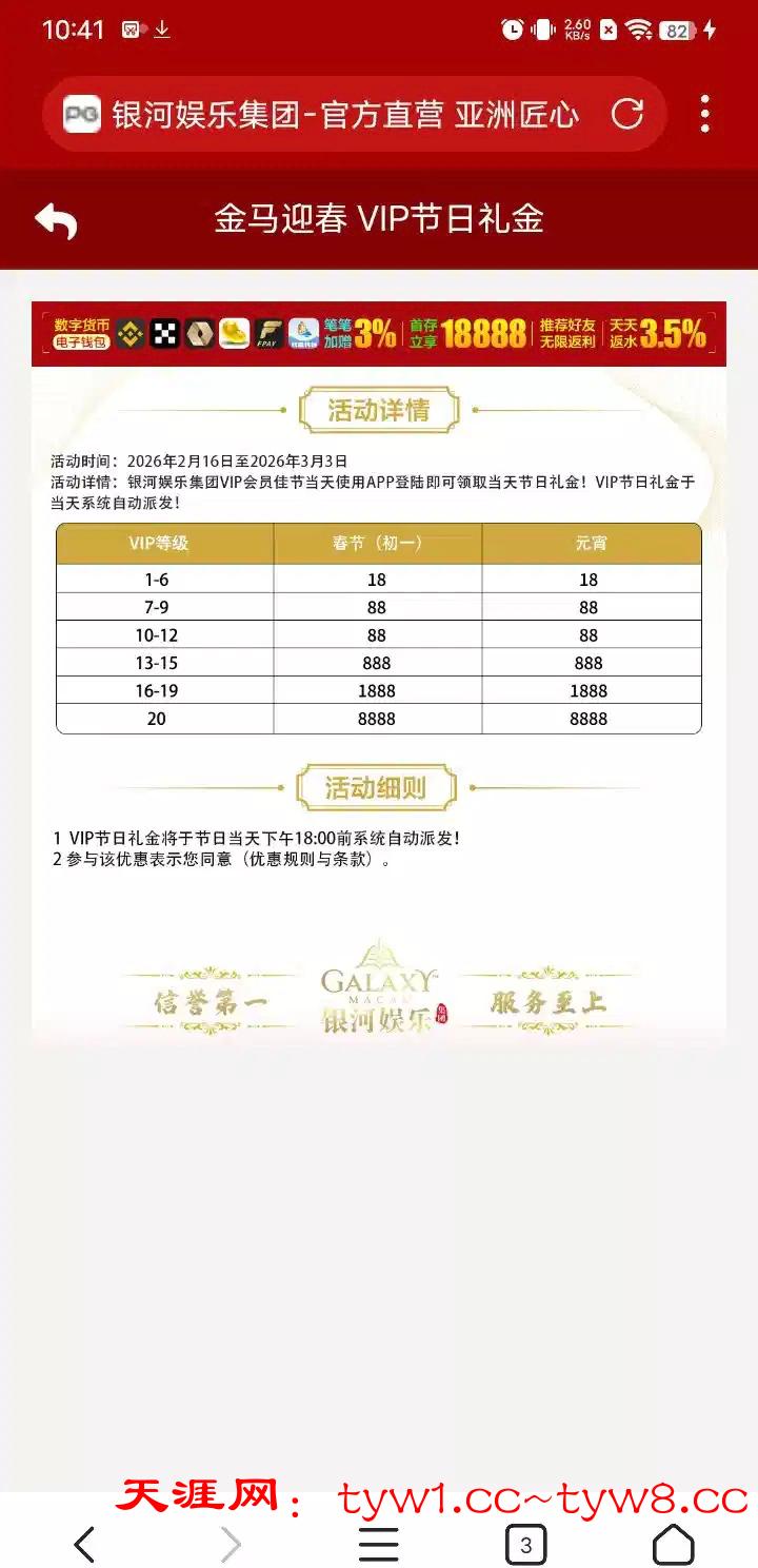 【银河41】vip等级彩金