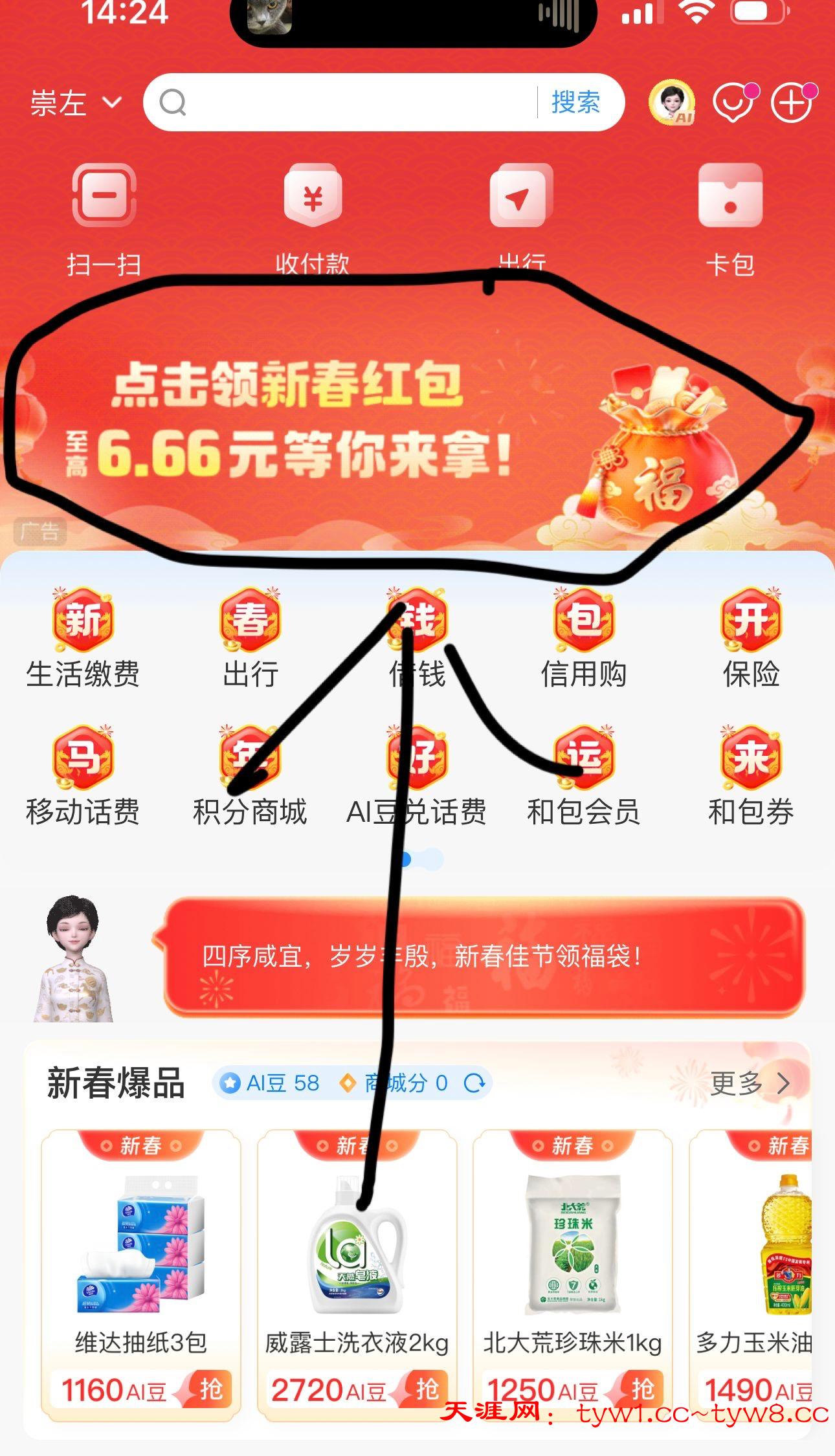 下载移动和包首页这个6.66进去绑卡就能提现