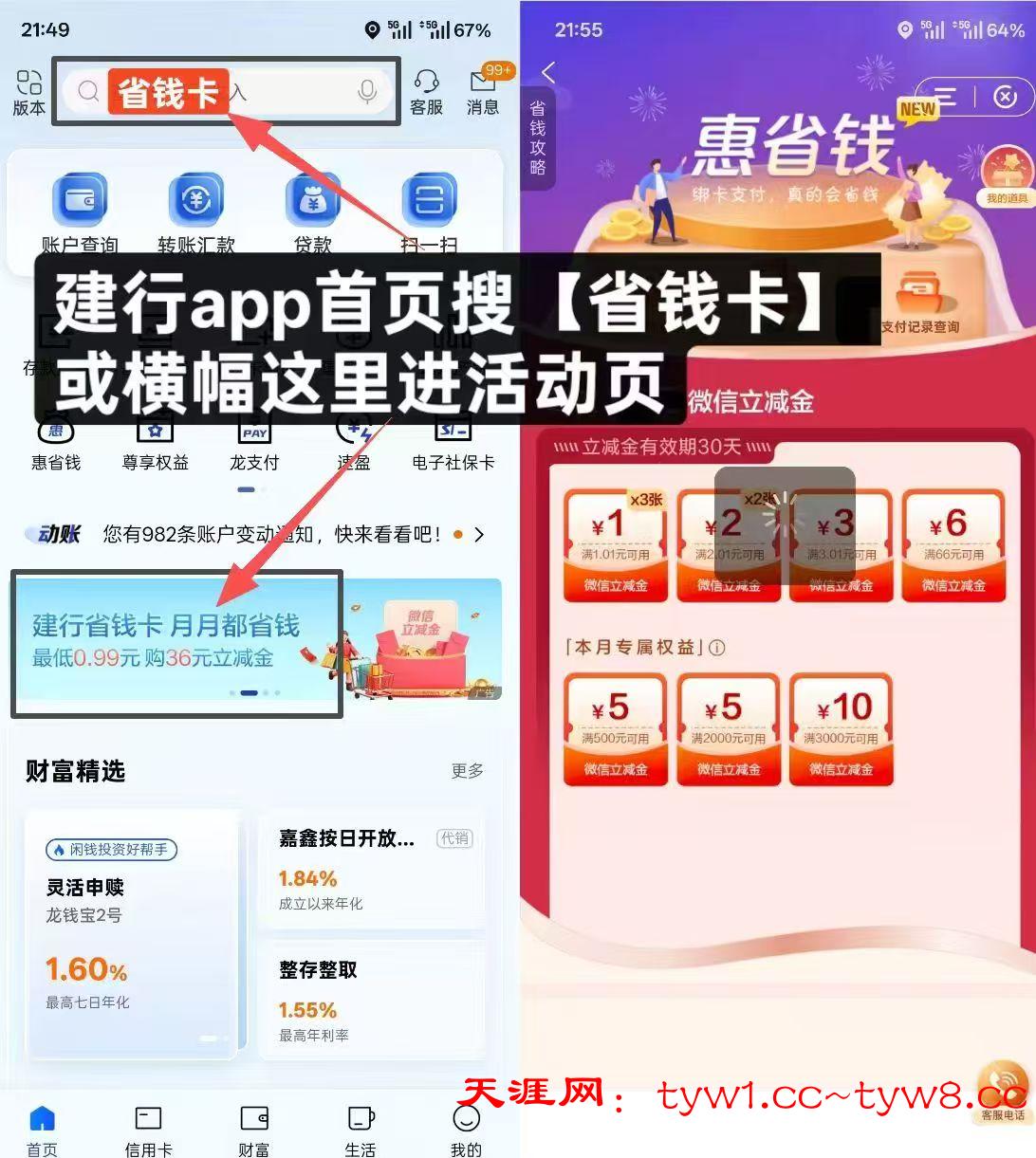 建行APP首页搜:省钱卡