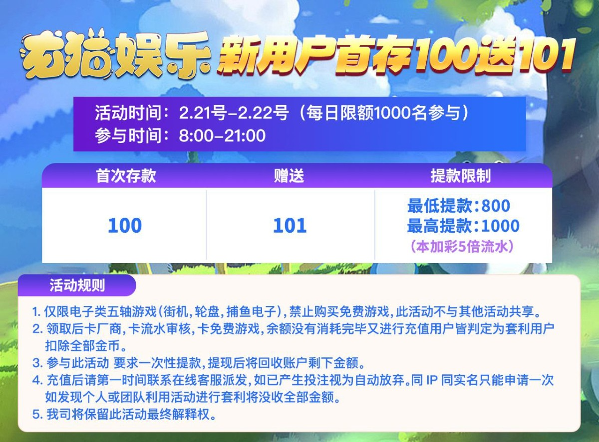 新用户注册送18彩金/10倍流水/102提现只能玩电子 不能买免费