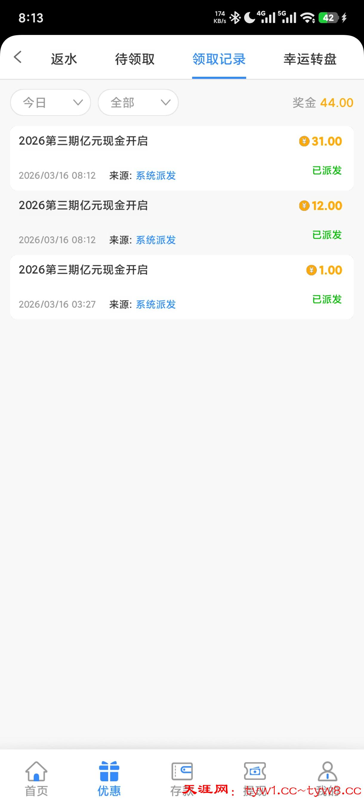 感觉要黑了,要充值才能领取,我充值了领了31打到了310,提现到钱能钱包,提现20分了还没到账