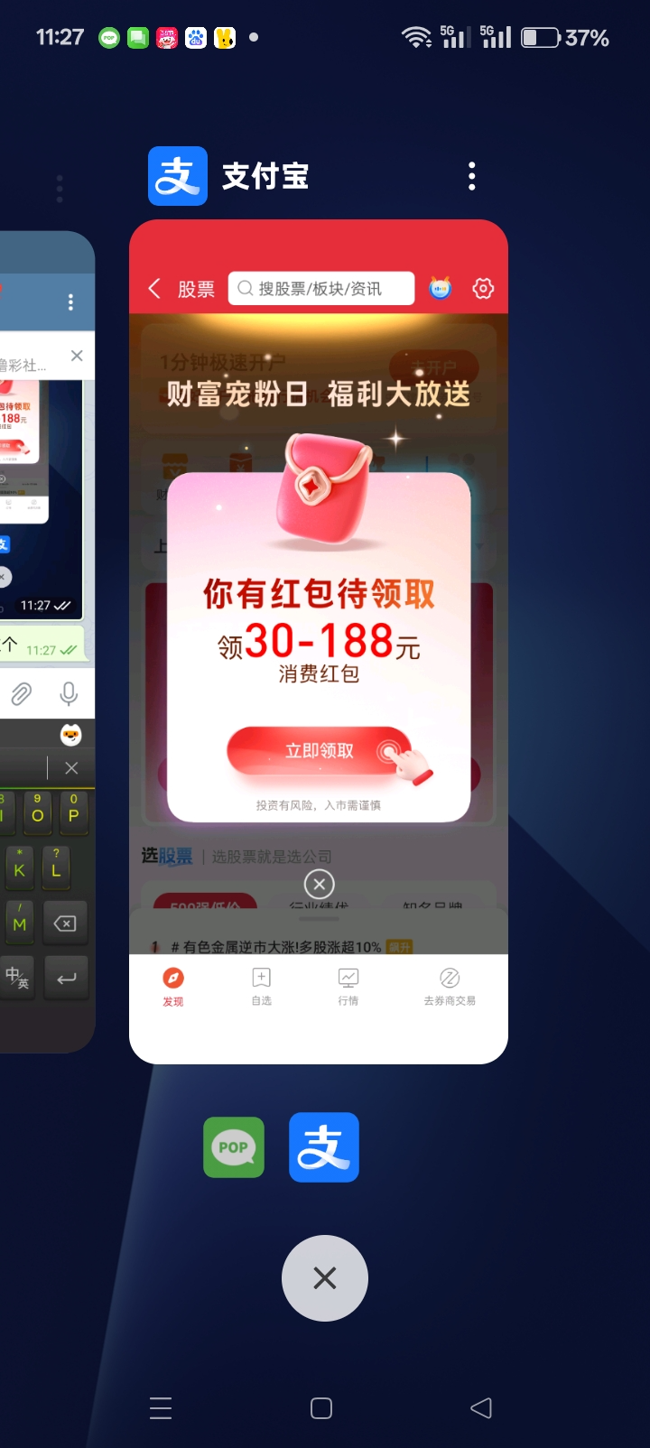支付宝首页股票 学投资教程领红包 只开户不用买股票 开户成功看三个视频即可领取。