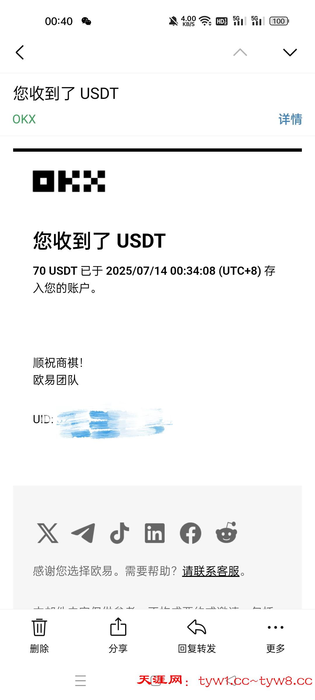 返现到账,感谢天涯