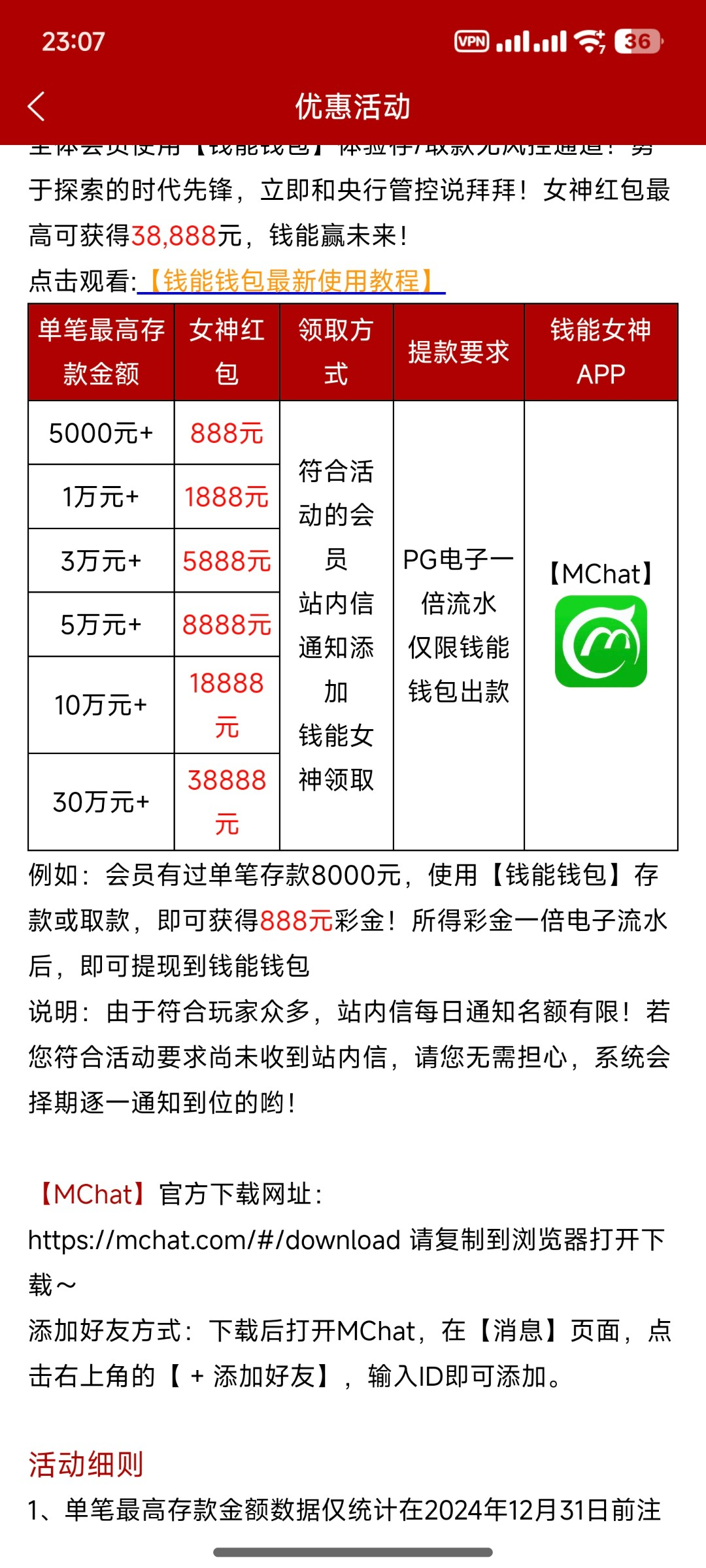 【990钱能女神活动更新了单笔存款】
