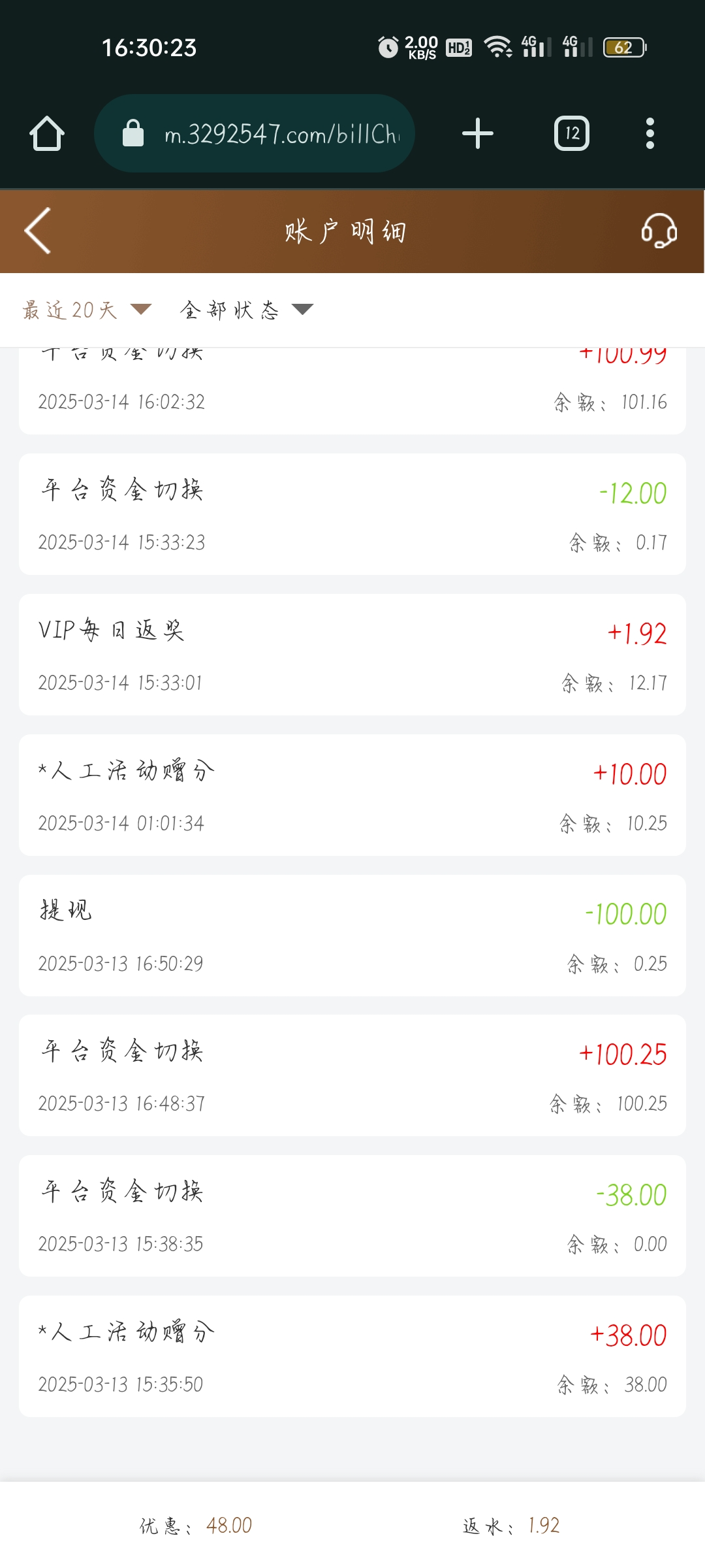 感谢兄弟,你不提我都忘记了,三天没上,有30块出了400