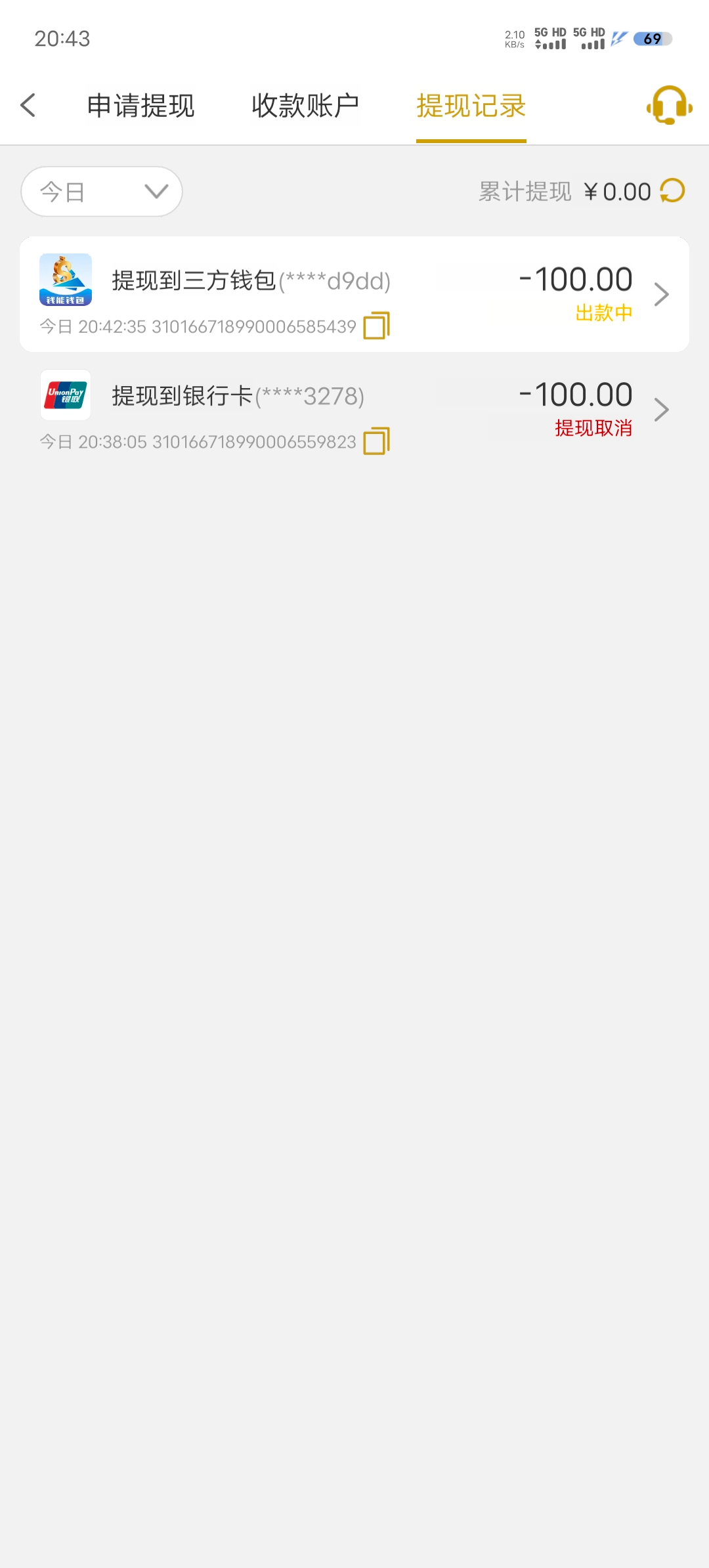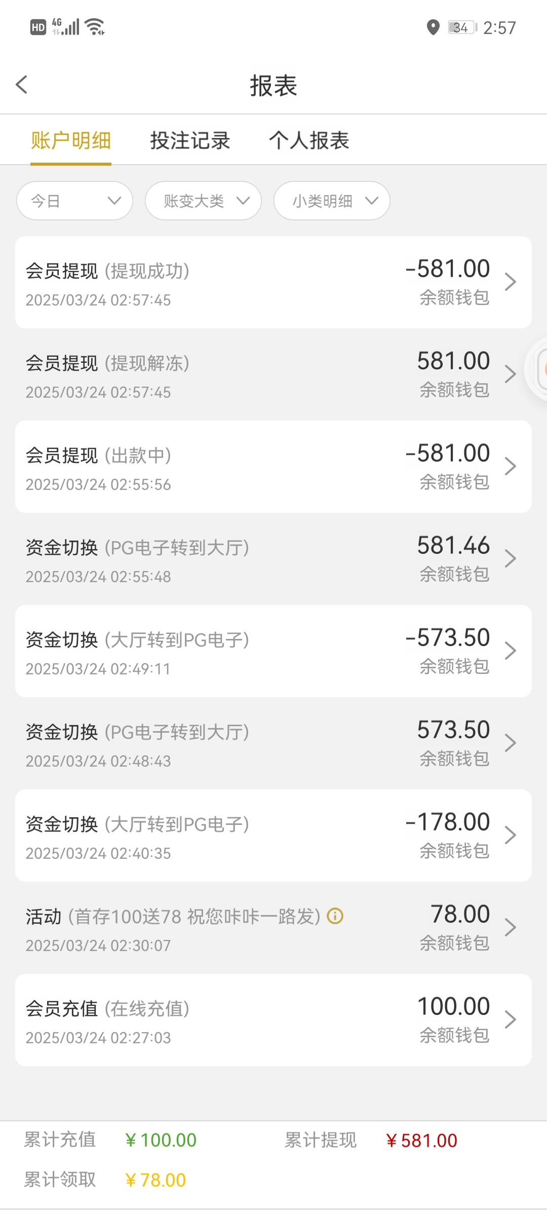 100到账