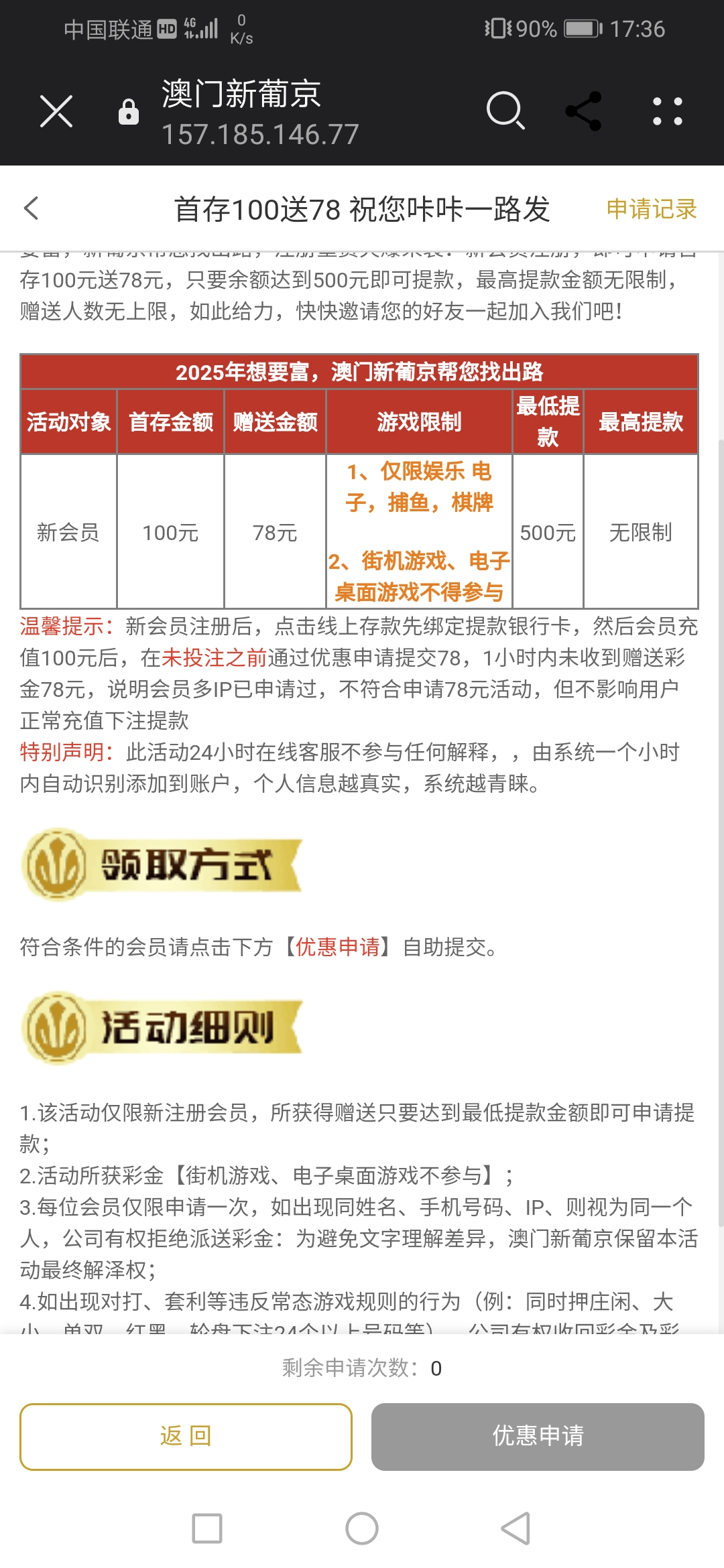 还没冲值显示申请优惠0次,是充值完有申请次数吗?