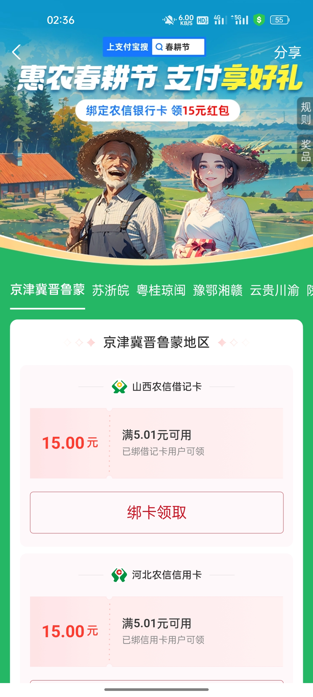 绑农信卡领取3张5元抵扣券