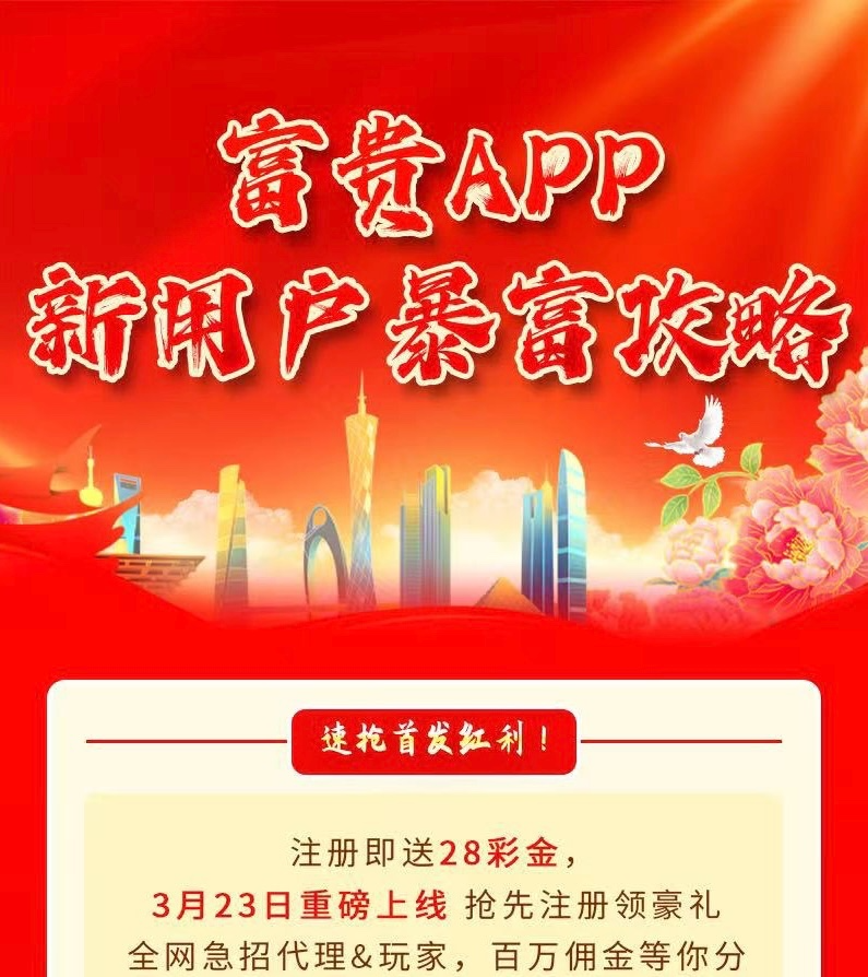 先注册好维护好也可以申请 富贵app今晚8点维护后上线注册就送28-88红包(开业后联系app内客服赠送) 默认28 打到108即可提
