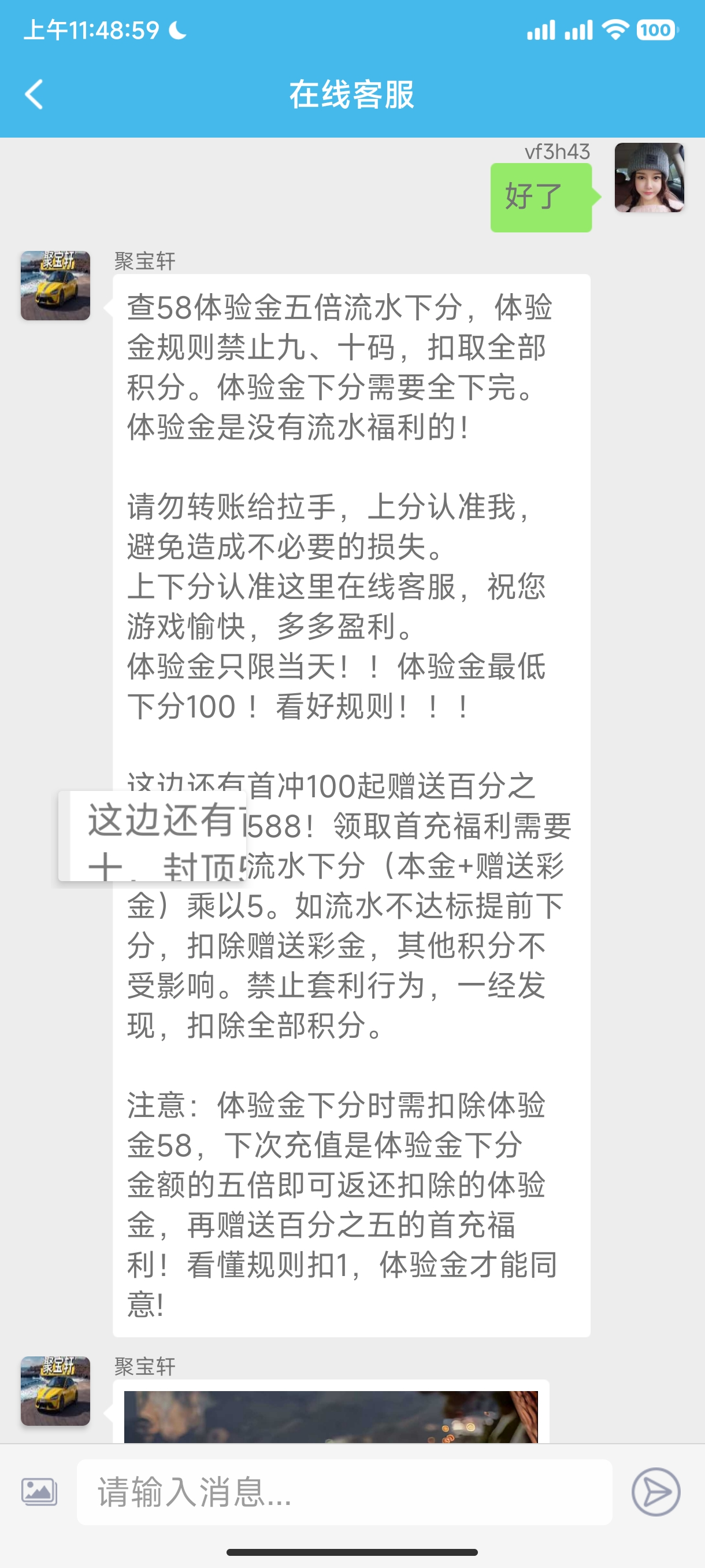 送58杯流水我小白不会玩打到直打到100就下分了,没注意看规则,可以碰瓷,房主有格局