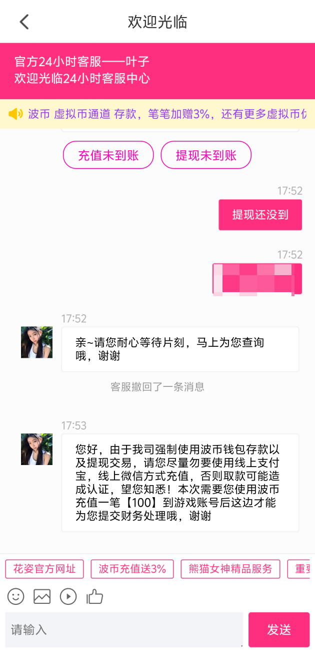 换个直播充 100 对着打把钱提出来