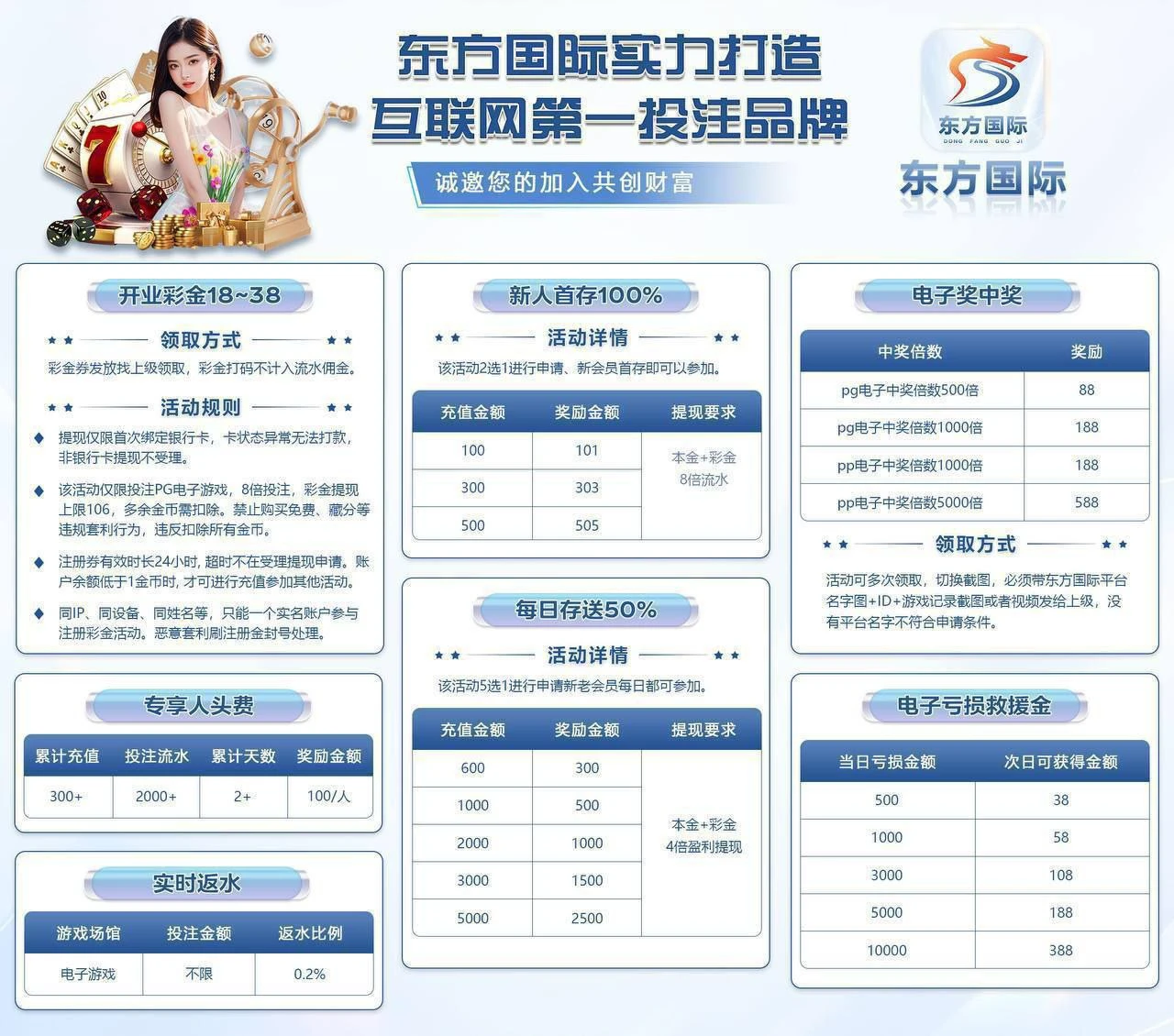 新人100➕100,300➕300,每日存送50%详情看活动,无论领取哪个彩金都必须先绑卡,首存彩金邮箱领取