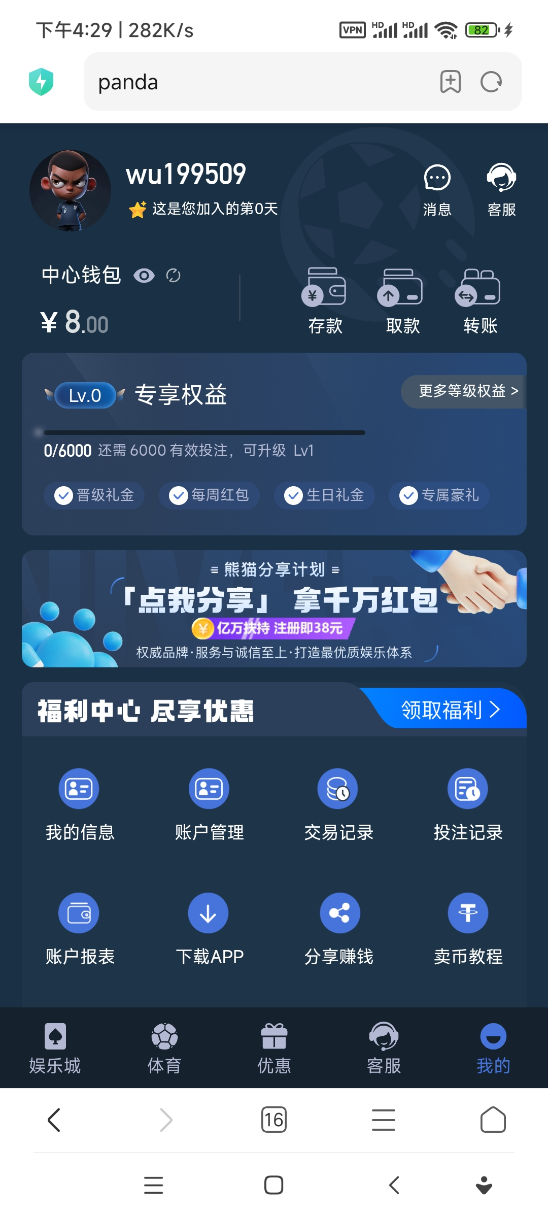 这个台子之前是送38,现在重新注册完善资料自助领8
