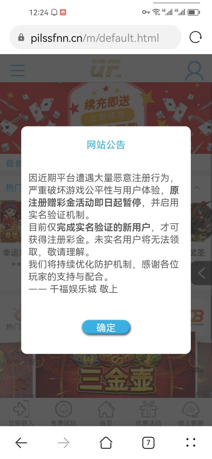 活动暂停了!说是要完成实名验证,送88彩金!